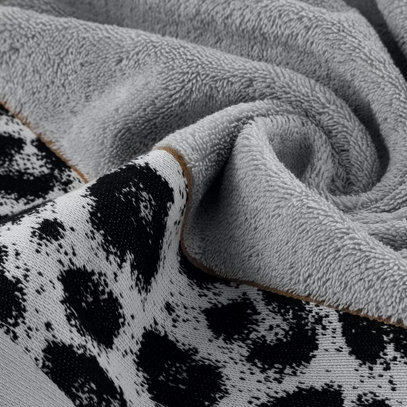 Ręcznik z drukowaną bordiurą szerokość: 70 cm, długość: 140 cm, kolor: srebrny, Gramatura: 500 GSM, Skład: 100% bawełna; część ozdobna: 100% poliester
