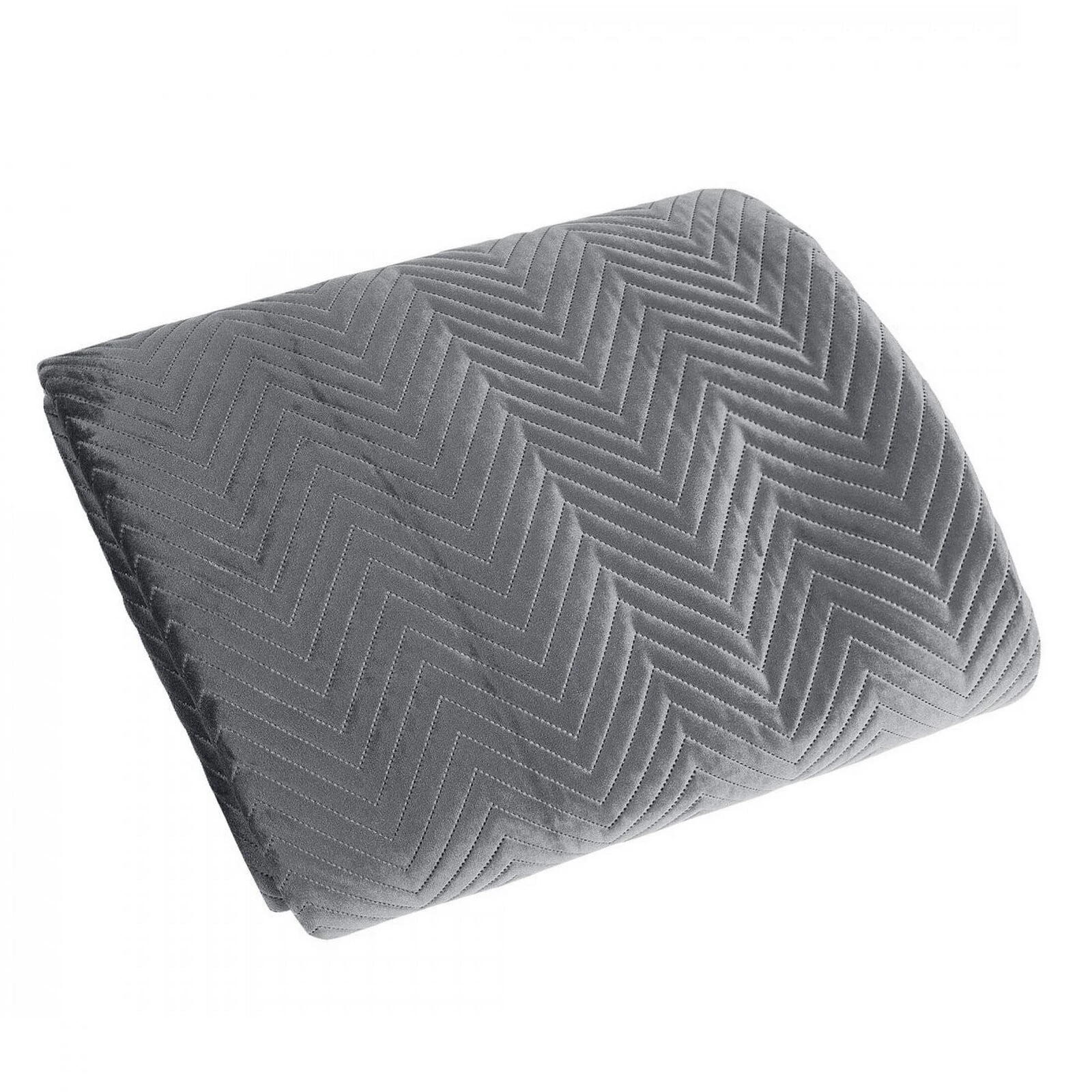 Ekskluzywna narzuta na łóżko z miękkiego i przyjemnego w dotyku welwetu pikowanego w dużą, gęstą jodełką. Do pikowania wykorzystano metodę bezszwową hotpress. szerokość: 170 cm, długość: 210 cm, kolor: grafitowy, Gramatura: 250+120+65 GSM, Skład: 100% poliester