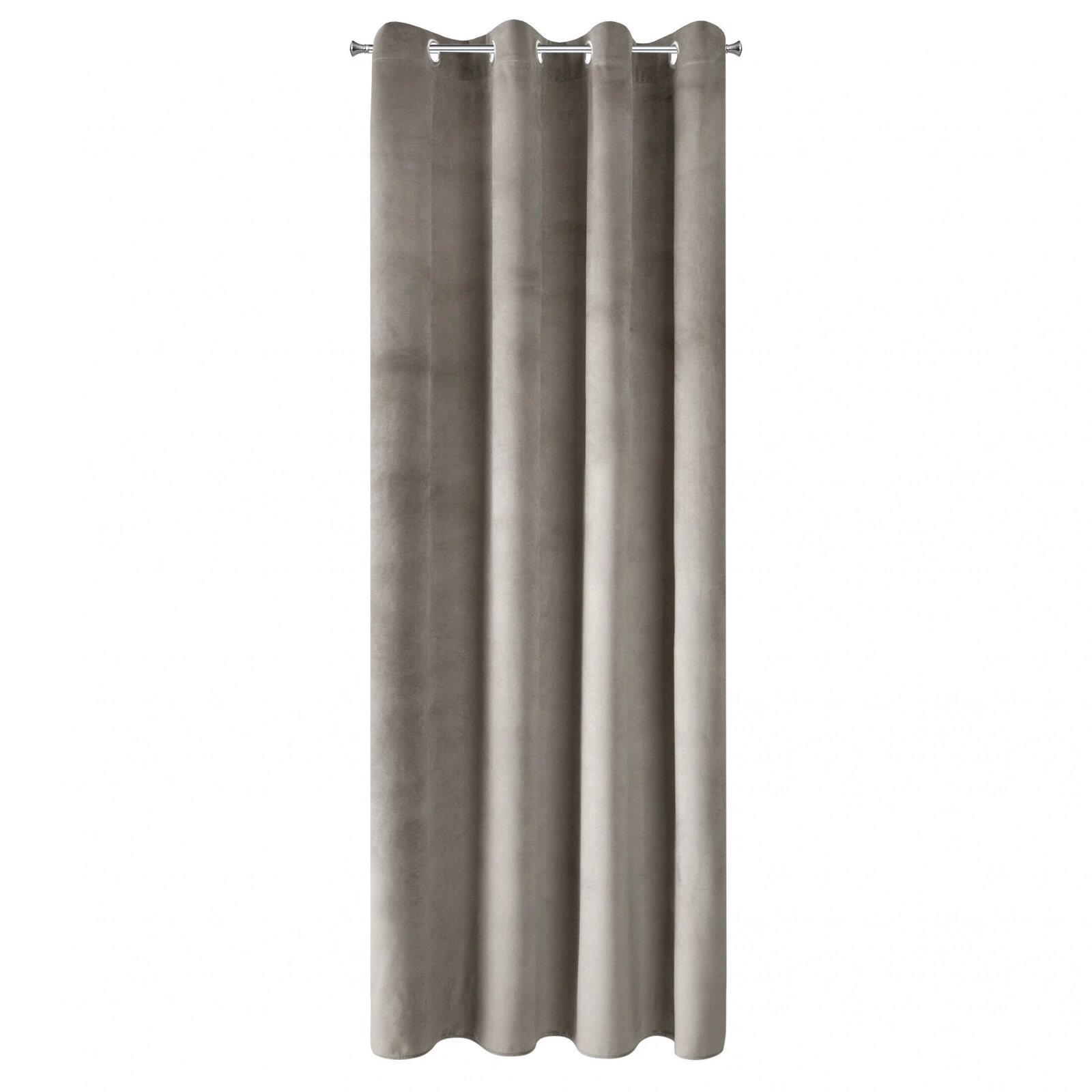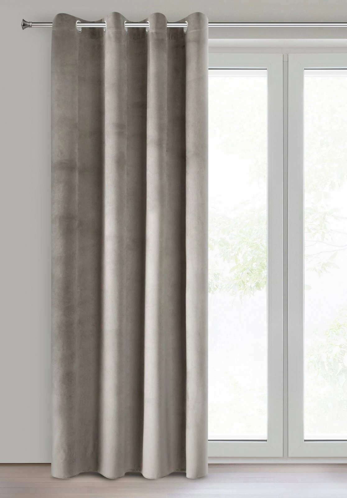 Miękka zasłona gotowa z jednokolorowego aksamitu o charakterystycznym dla welwetu połysku. Mięsista tkanina daje wysoki stopień zaciemnienia wnętrza. szerokość: 140 cm, długość: 250 cm, kolor: ciemnobeżowy, Gramatura: 215 GSM, Skład: 100% poliester