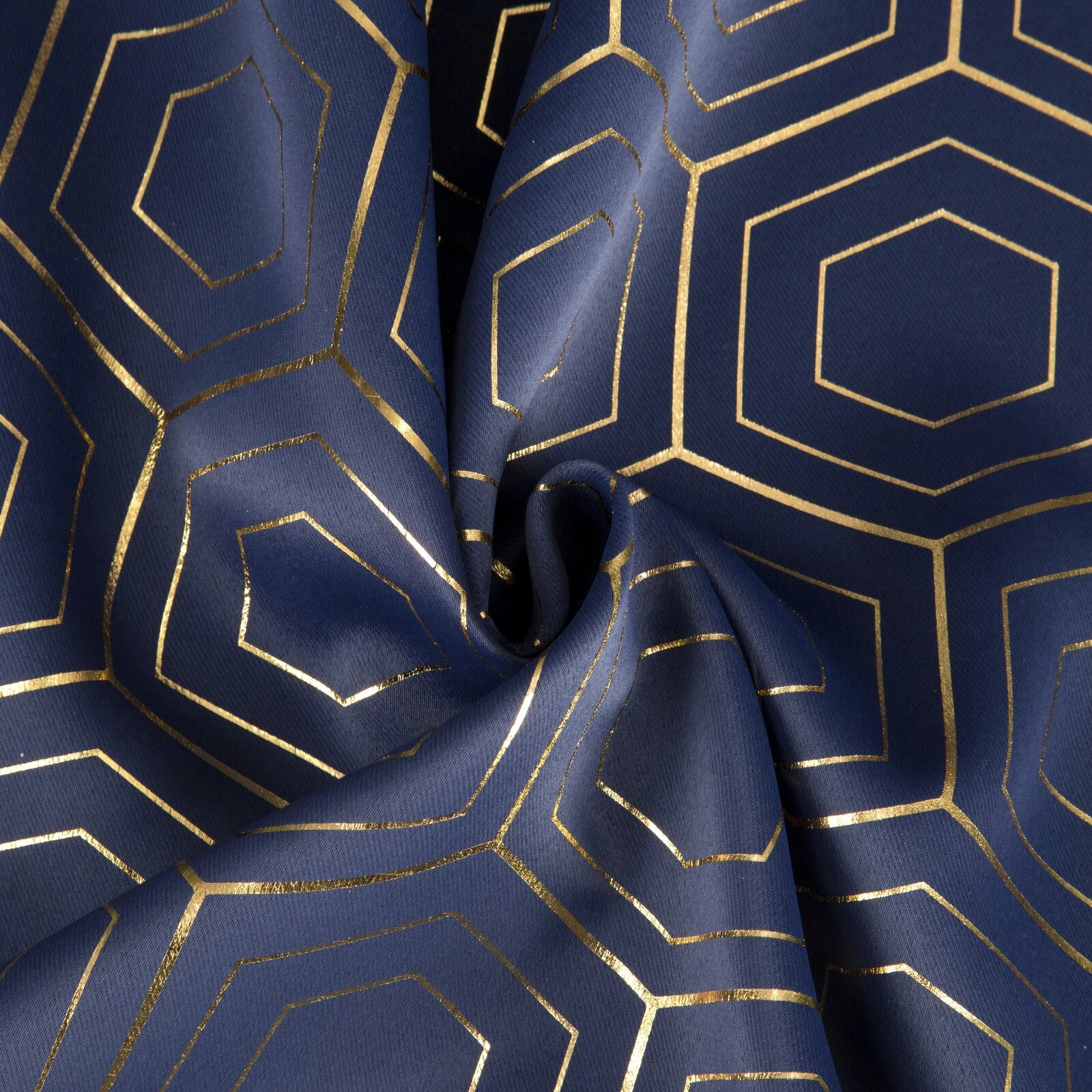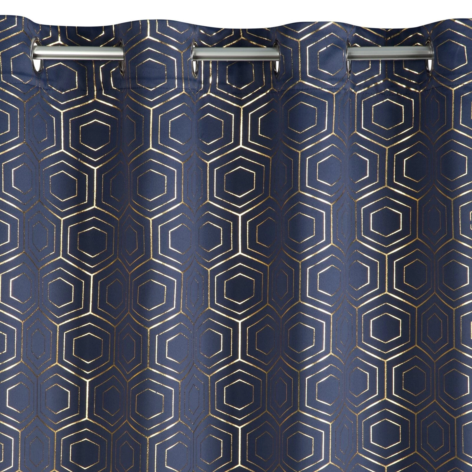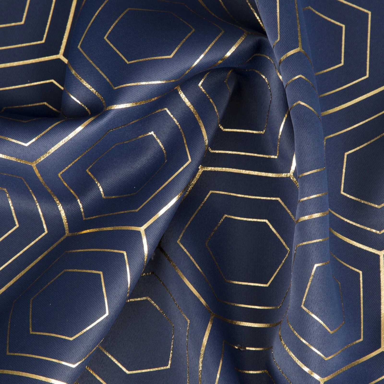- Zasłona zaciemniająca ze złotym, geometrycznym nadrukiem szerokość: 135 cm, długość: 250 cm, kolor: granatowy, Gramatura: 195 GSM, Skład: 100% poliester