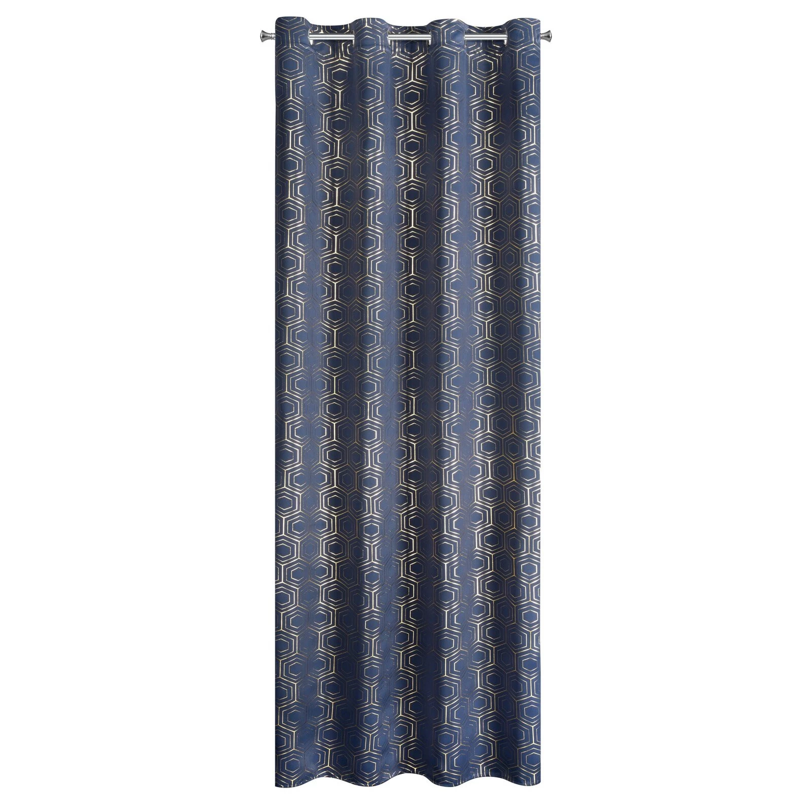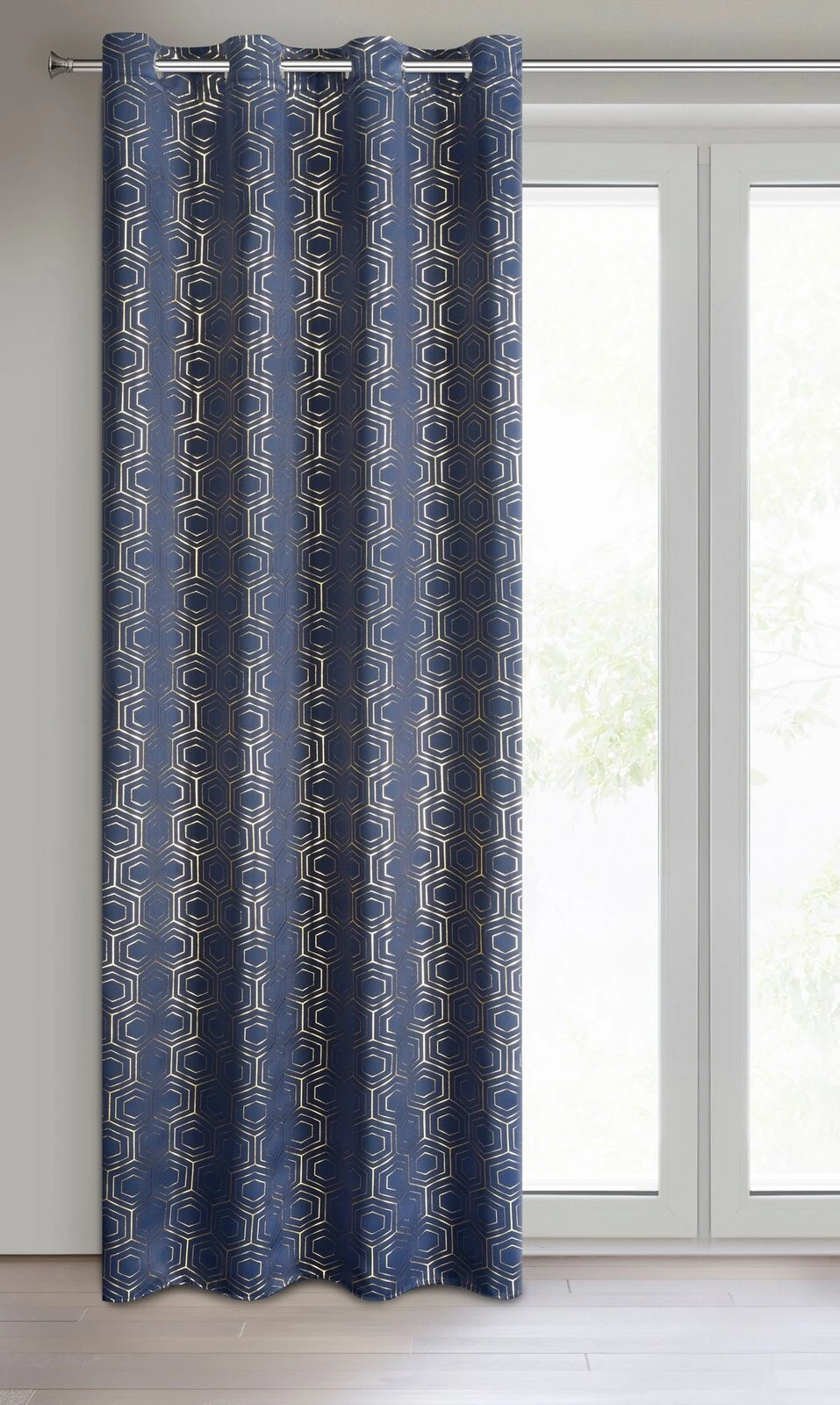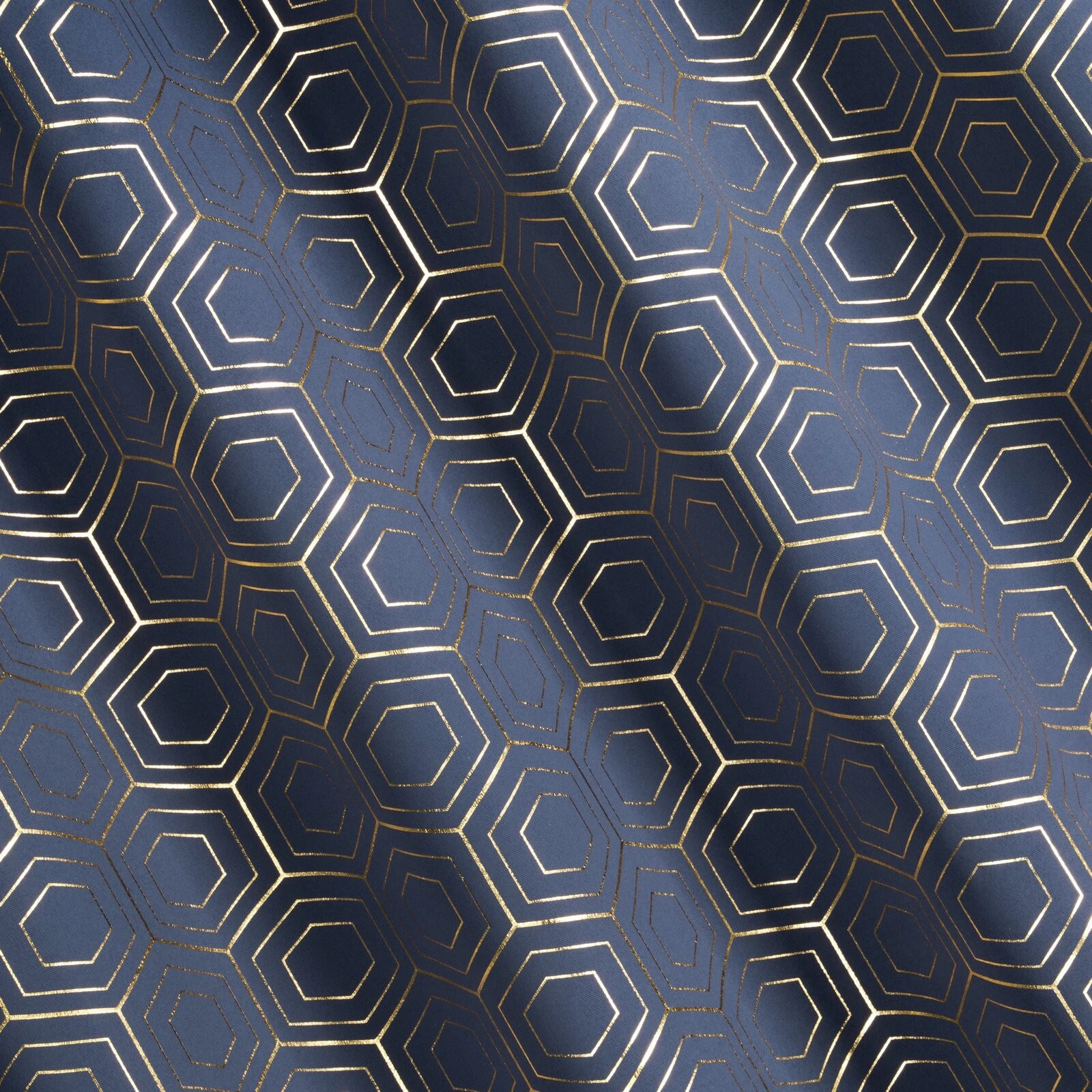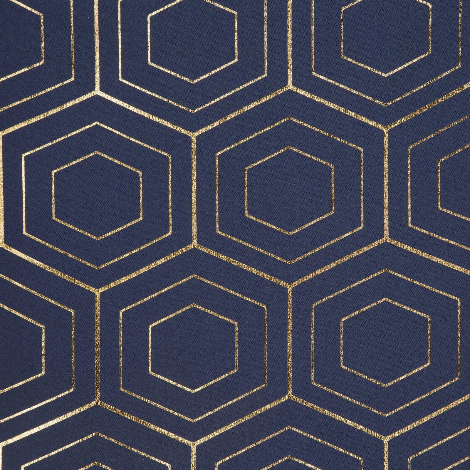 - Zasłona zaciemniająca ze złotym, geometrycznym nadrukiem szerokość: 135 cm, długość: 250 cm, kolor: granatowy, Gramatura: 195 GSM, Skład: 100% poliester