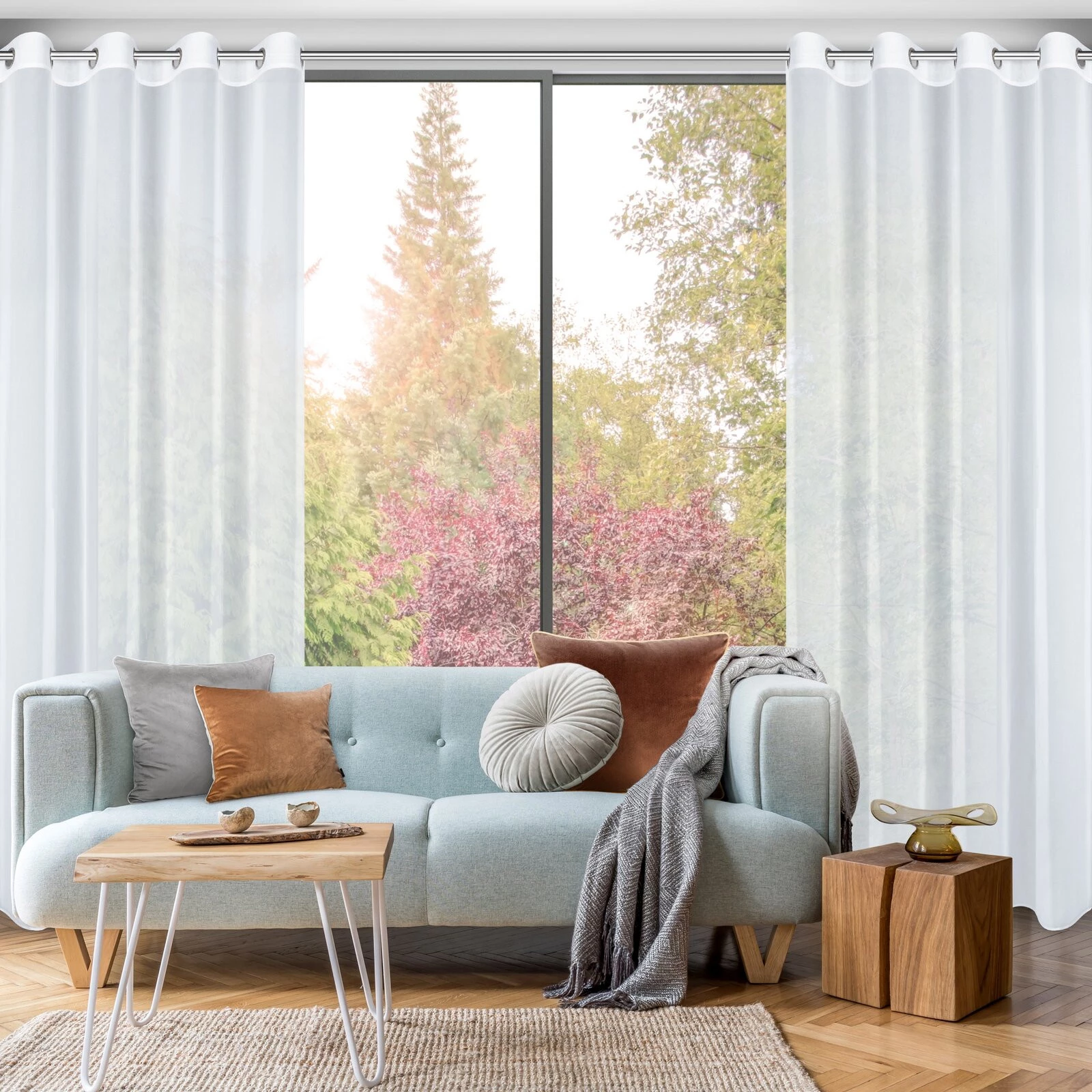 - Firana gotowa z gładkiej tkaniny szyfonowej szerokość: 135 cm, długość: 270 cm, kolor: biały, Gramatura: 60 GSM, Skład: 100% poliester
