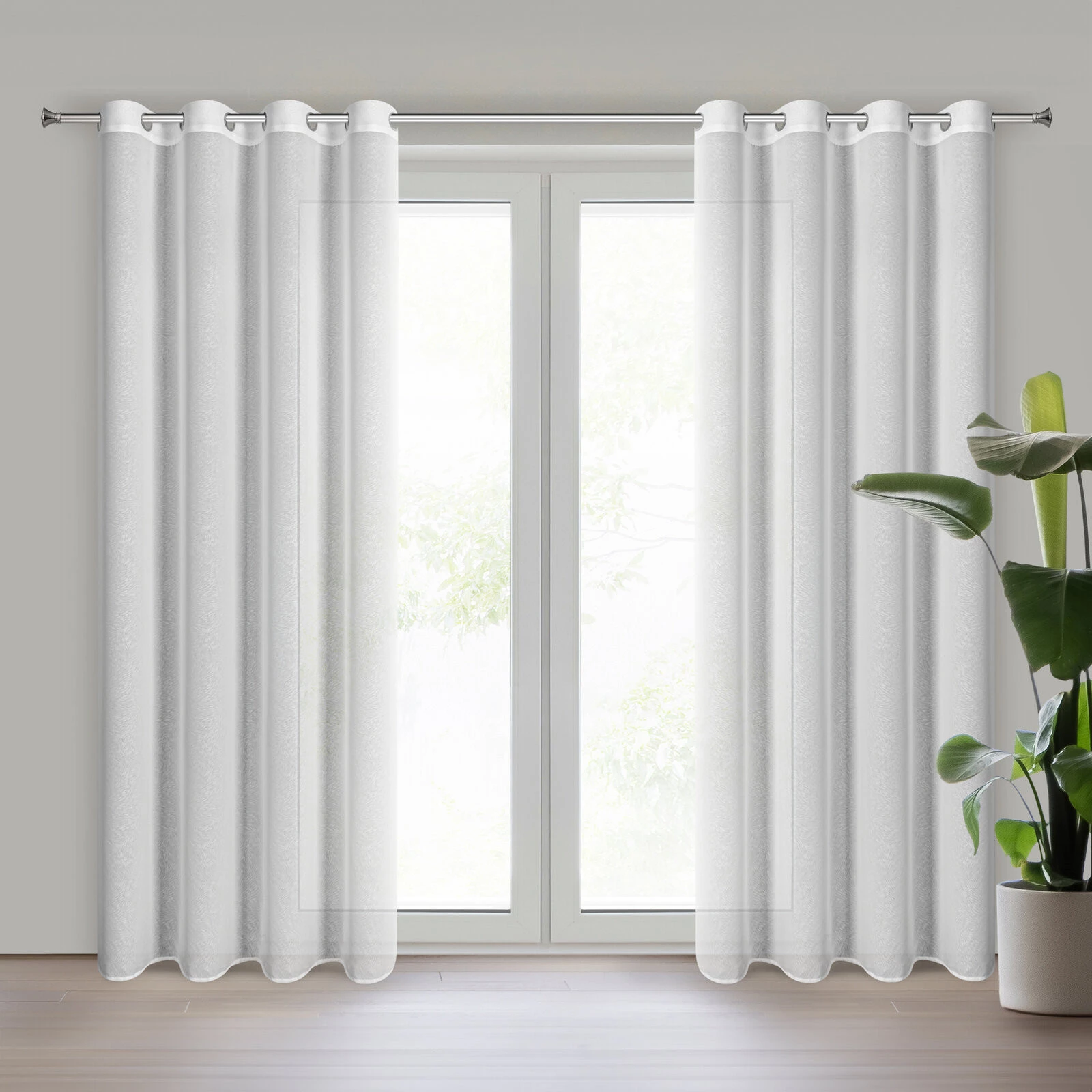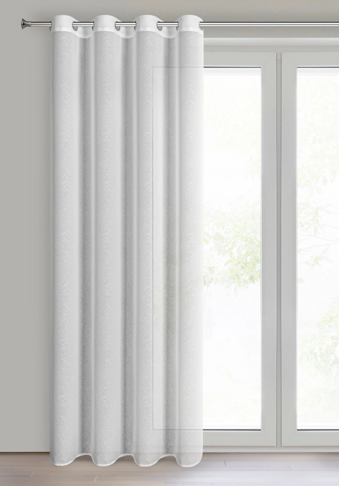 Firana gotowa z tkaniny szyfonowej z delikatnym wzorem szerokość: 140 cm, długość: 250 cm, kolor: biały, Skład: 100% poliester