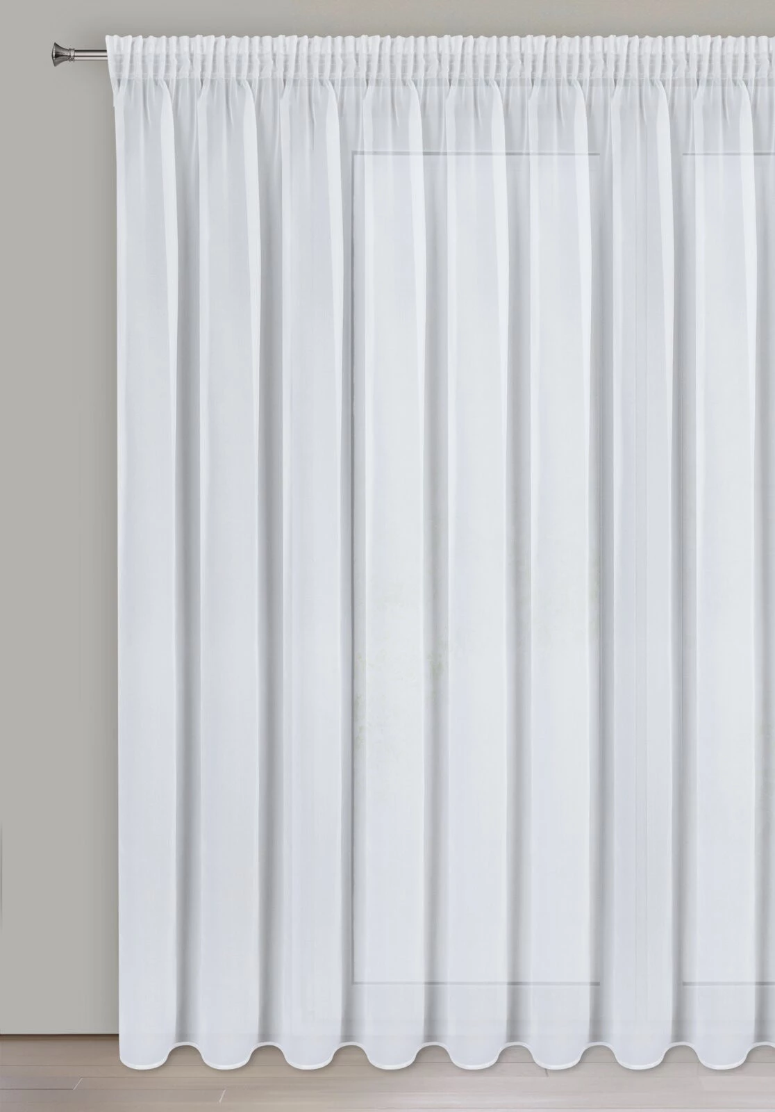 Firana gotowa z gładkiej tkaniny szyfonowej szerokość: 350 cm, długość: 270 cm, kolor: biały, Gramatura: 60 GSM, Skład: 100% poliester