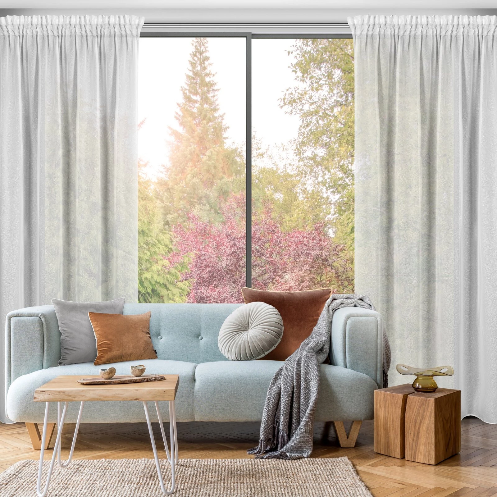 - Firana gotowa z tkaniny szyfonowej z delikatnym wzorem szerokość: 140 cm, długość: 270 cm, kolor: biały, Gramatura: 60 GSM, Skład: 100% poliester