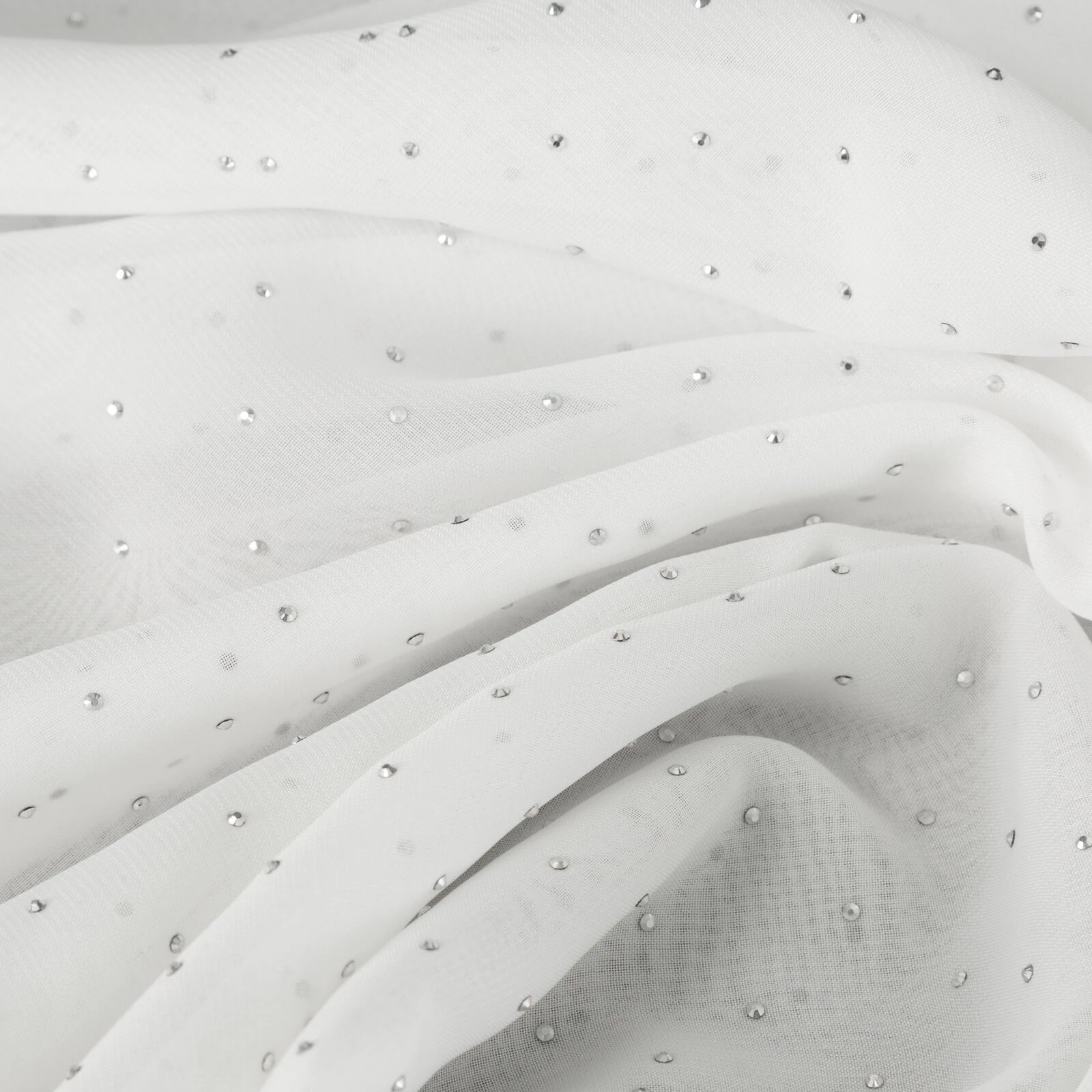 Firana gotowa szyfonowa zdobiona diamencikami szerokość: 140 cm, długość: 250 cm, kolor: biały, Gramatura: 60 GSM, Skład: 100% poliester