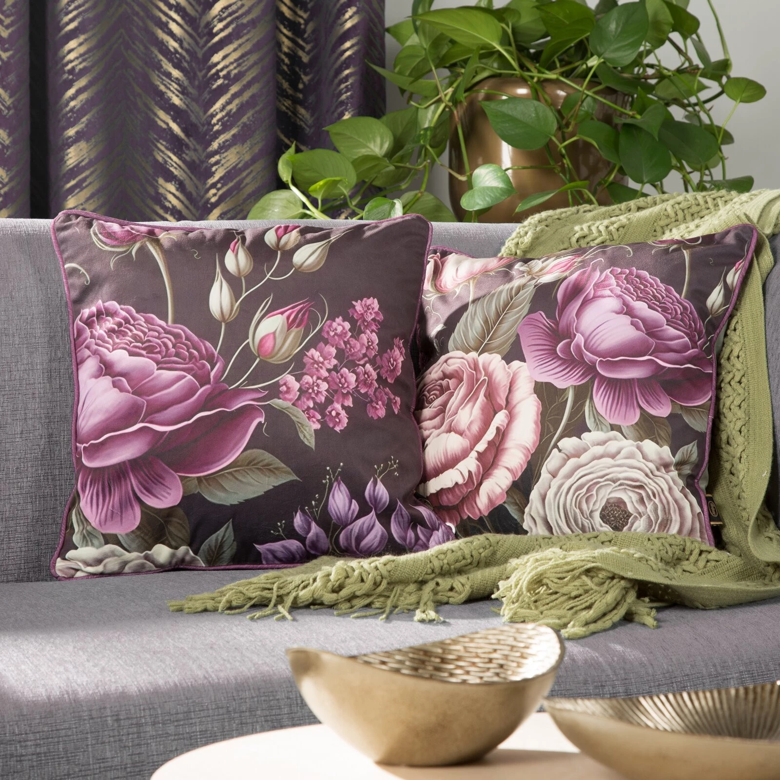 - Welwetowa poszewka z modnym designerskim wzorem szerokość: 45 cm, długość: 45 cm, kolor: fioletowy, Gramatura: 200 GSM, Skład: 100% poliester