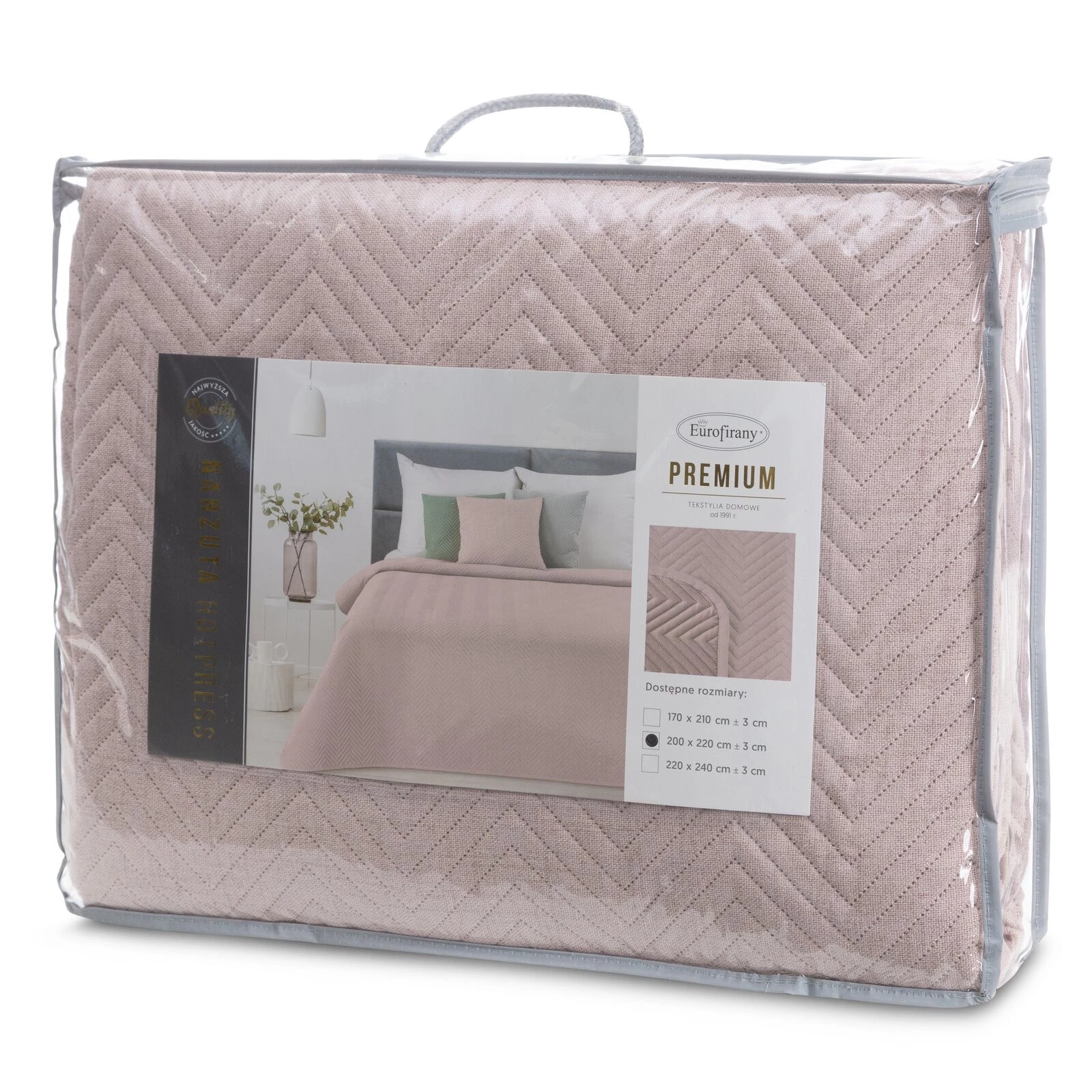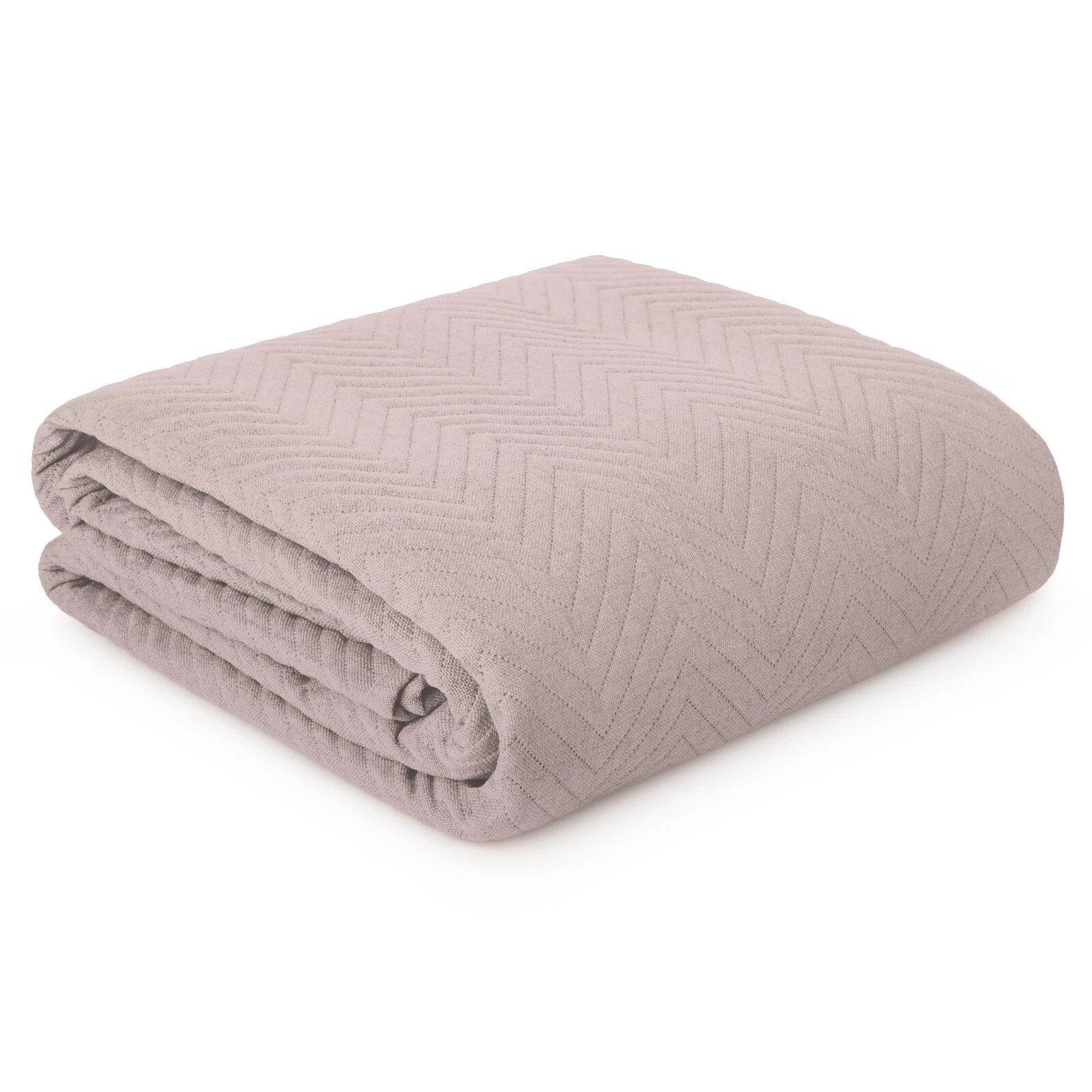 - Narzuta hot press imitująca len szerokość: 170 cm, długość: 210 cm, kolor: różowy, Gramatura: 185 GSM, Skład: 100% poliester