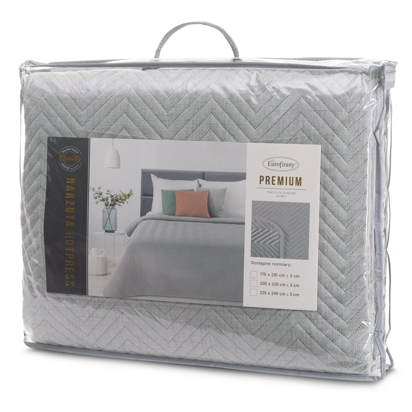 - Narzuta hot press imitująca len szerokość: 200 cm, długość: 220 cm, kolor: srebrny, Gramatura: 185 GSM, Skład: 100% poliester