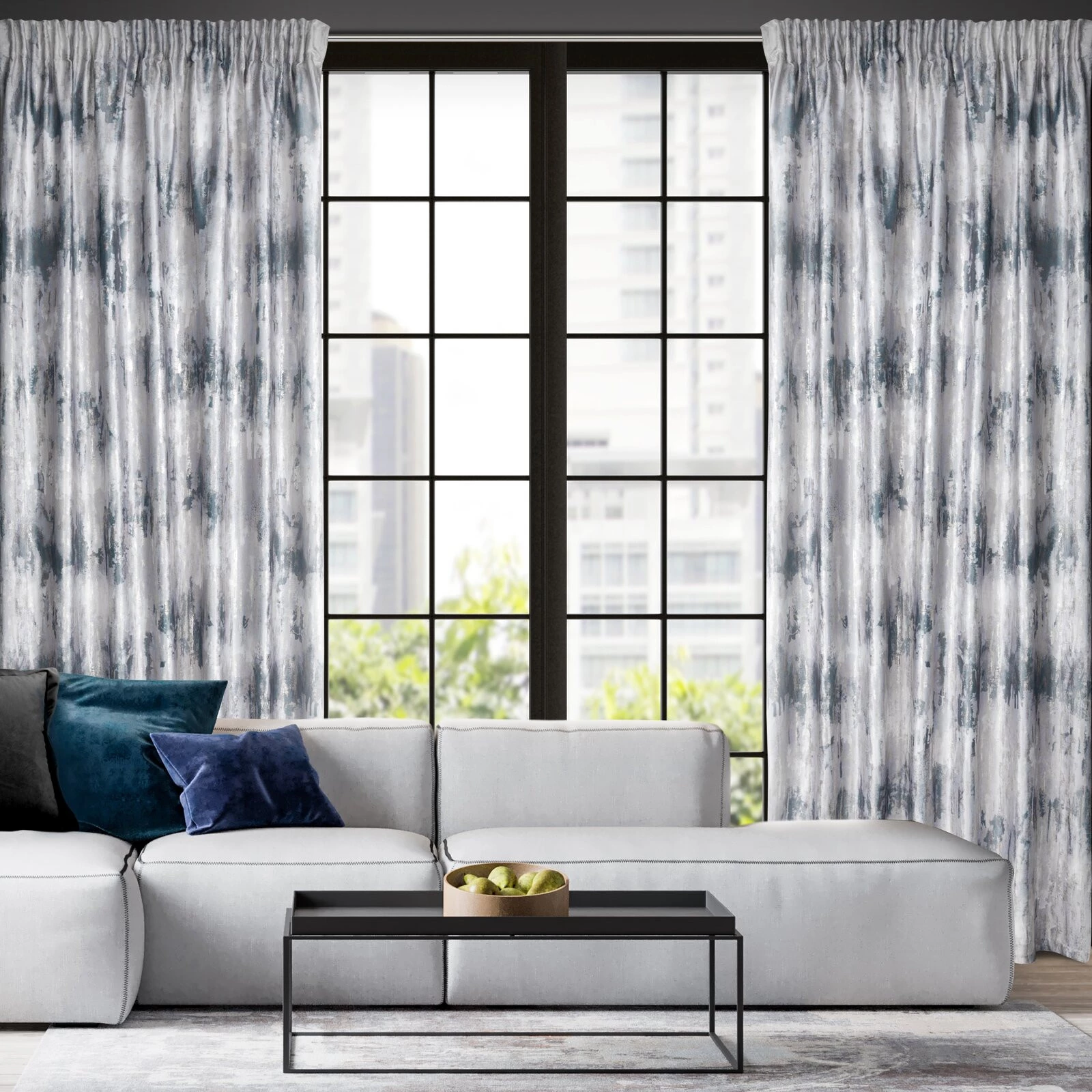Zasłona welwetowa z metalicznym nadrukiem szerokość: 140 cm, długość: 270 cm, kolor: srebrny, Gramatura: 200 GSM, Skład: 100% poliester