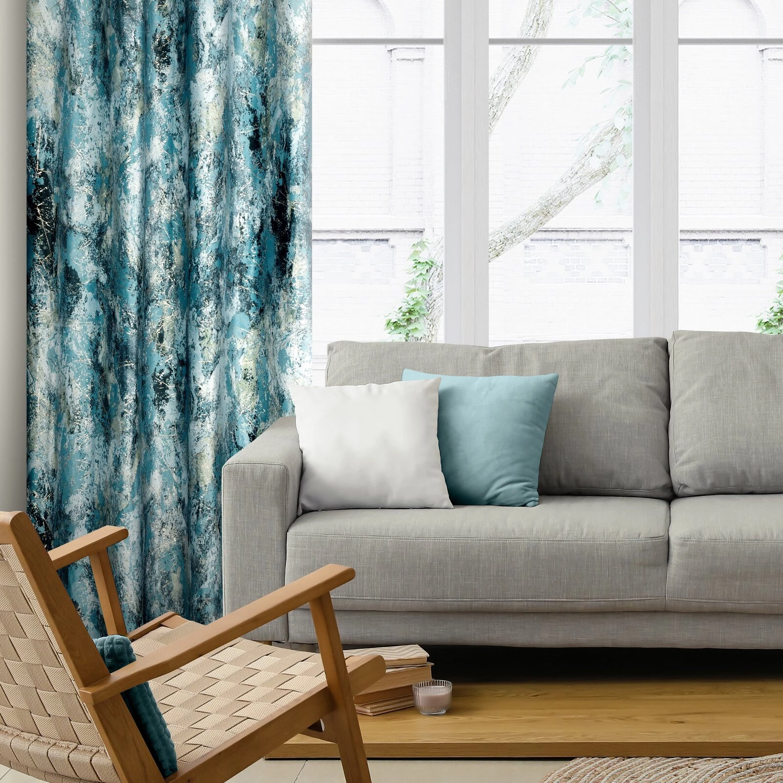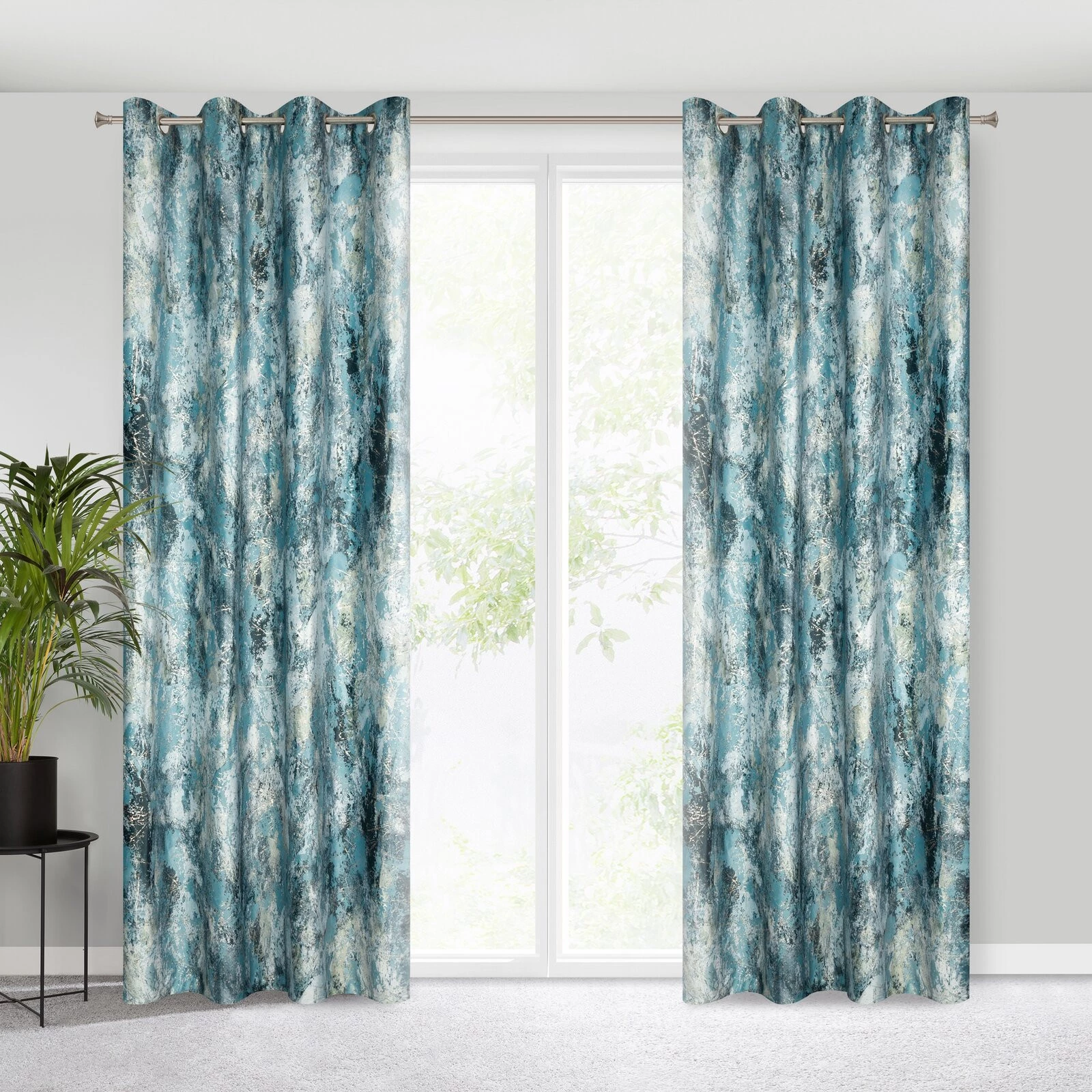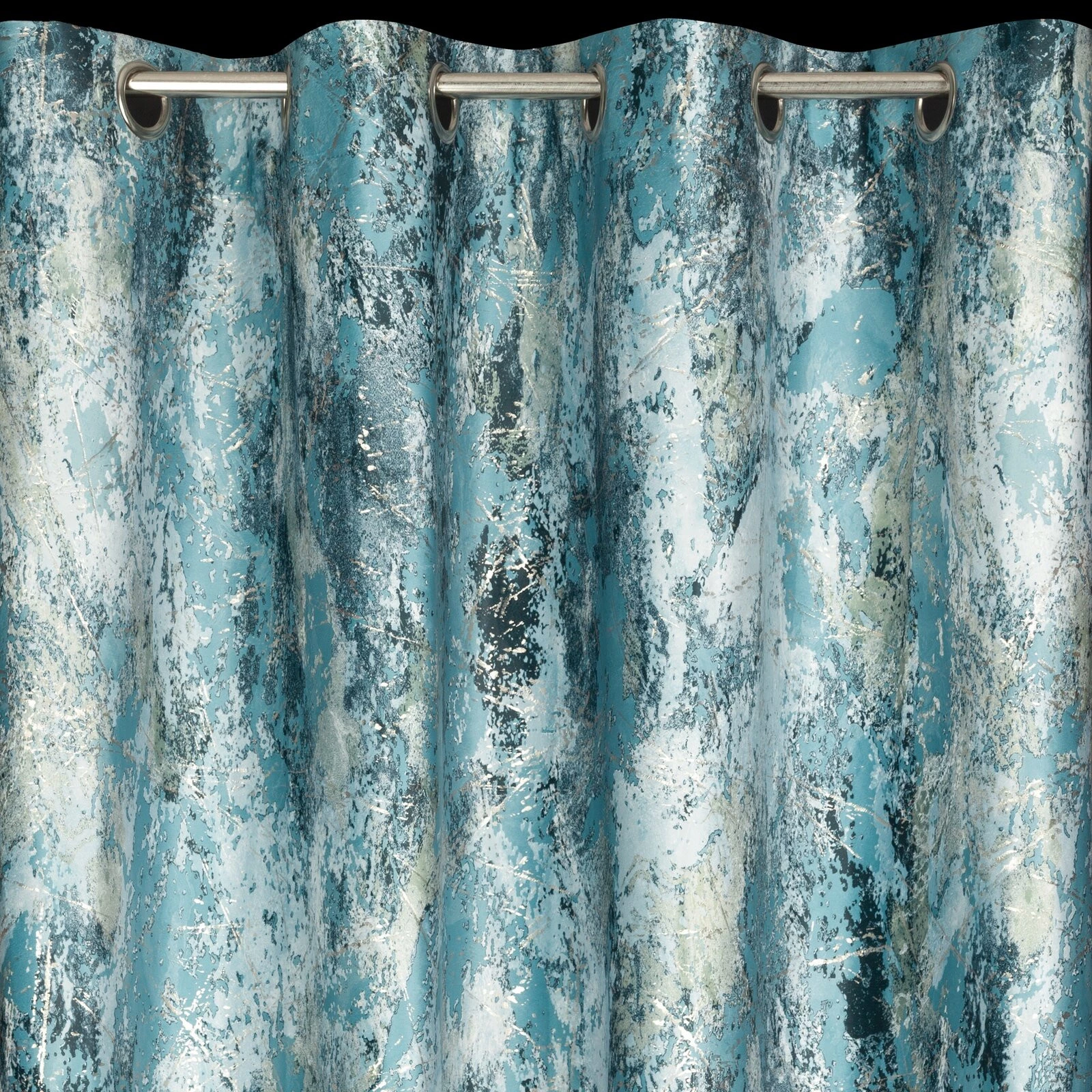 - Zasłona welwetowa z metalicznym nadrukiem szerokość: 140 cm, długość: 250 cm, kolor: turkusowy, Gramatura: 200 GSM, Skład: 100% poliester