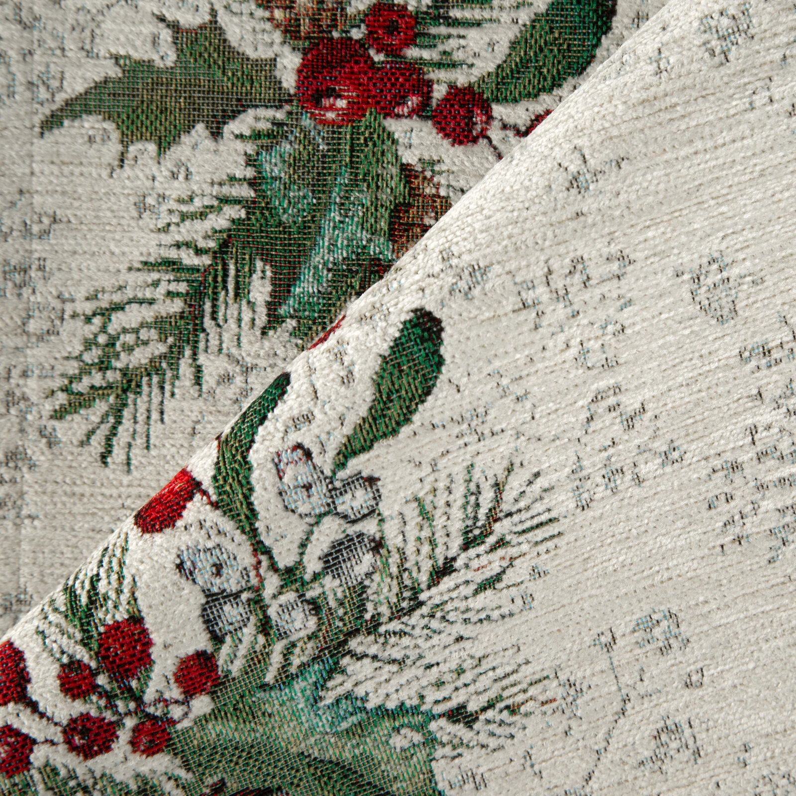 - Obrus z gobeliny szenilowej ze świątecznym wzorem szerokość: 50 cm, długość: 110 cm, kolor: popielaty, Gramatura: 450 GSM, Skład: 43% poliester, 40% akryl, 17% bawełna