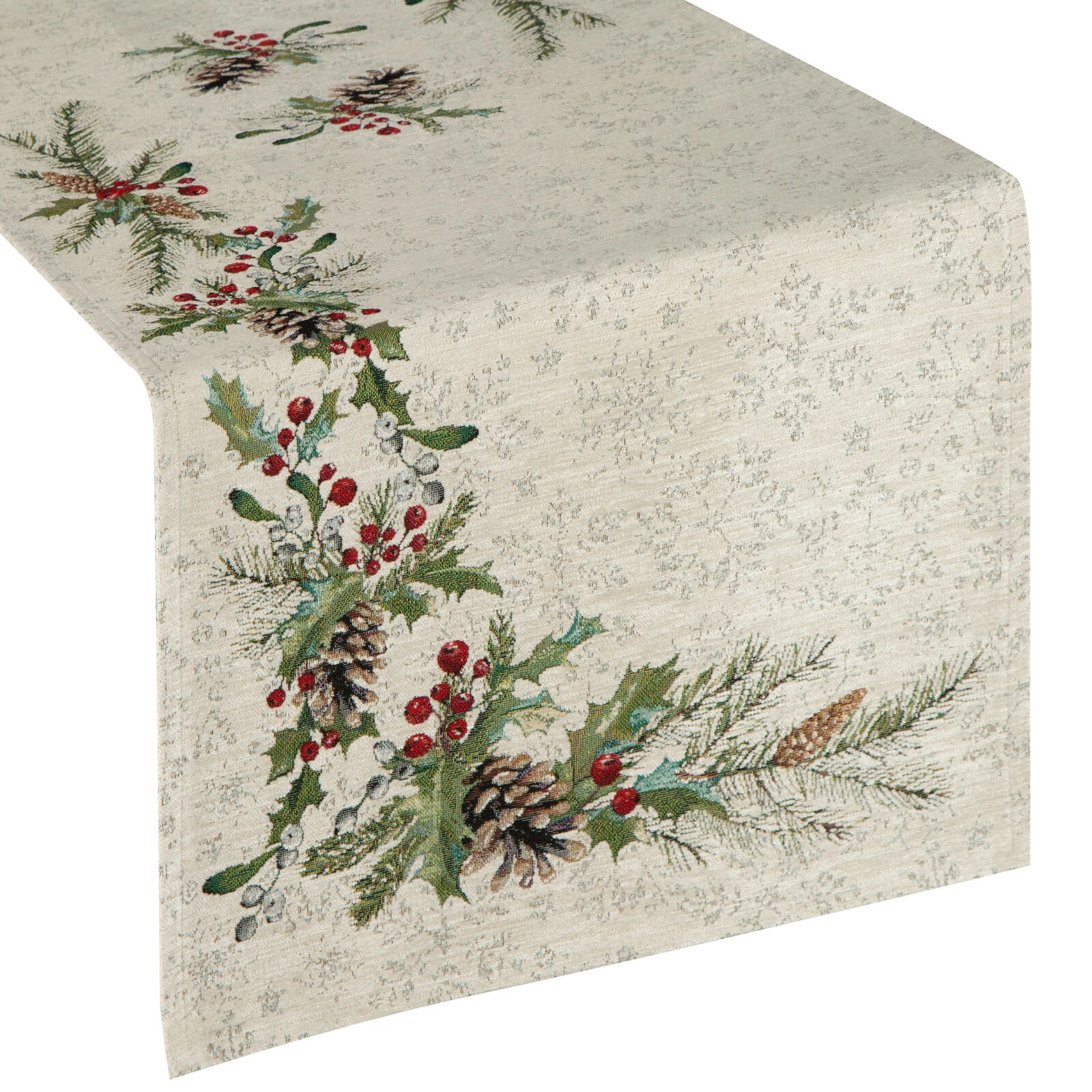 Obrus z gobeliny szenilowej ze świątecznym wzorem szerokość: 50 cm, długość: 110 cm, kolor: popielaty, Gramatura: 450 GSM, Skład: 43% poliester, 40% akryl, 17% bawełna