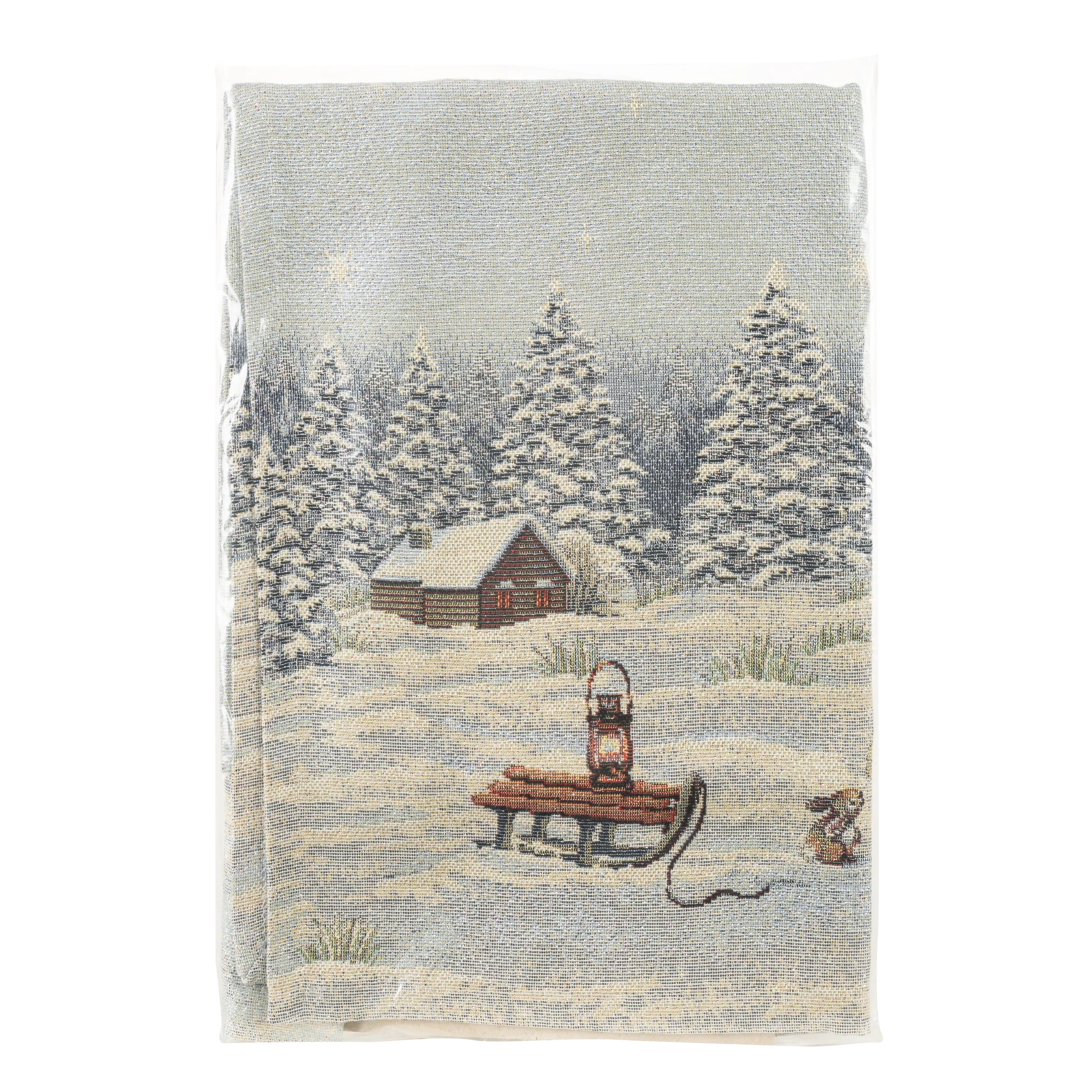 Obrus gobelinowy ze świątecznym wzorem szerokość: 50 cm, długość: 110 cm, kolor: srebrny, Skład: 53% poliester, 40% bawełna, 4% nić metaliczna, 3% akryl