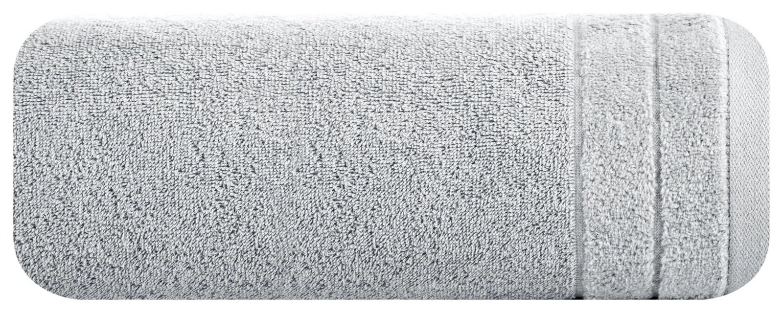 Elegancki ręcznik z delikatnej i bardzo chłonnej tkaniny frotte, jednokolorowy. Krawędzie zdobione subtelną bordiurą z welwetu. Łatwy w praniu, trwałe kolory. szerokość: 30 cm, długość: 50 cm, kolor: srebrny, Gramatura: 500 GSM, Skład: 100% bawełna
