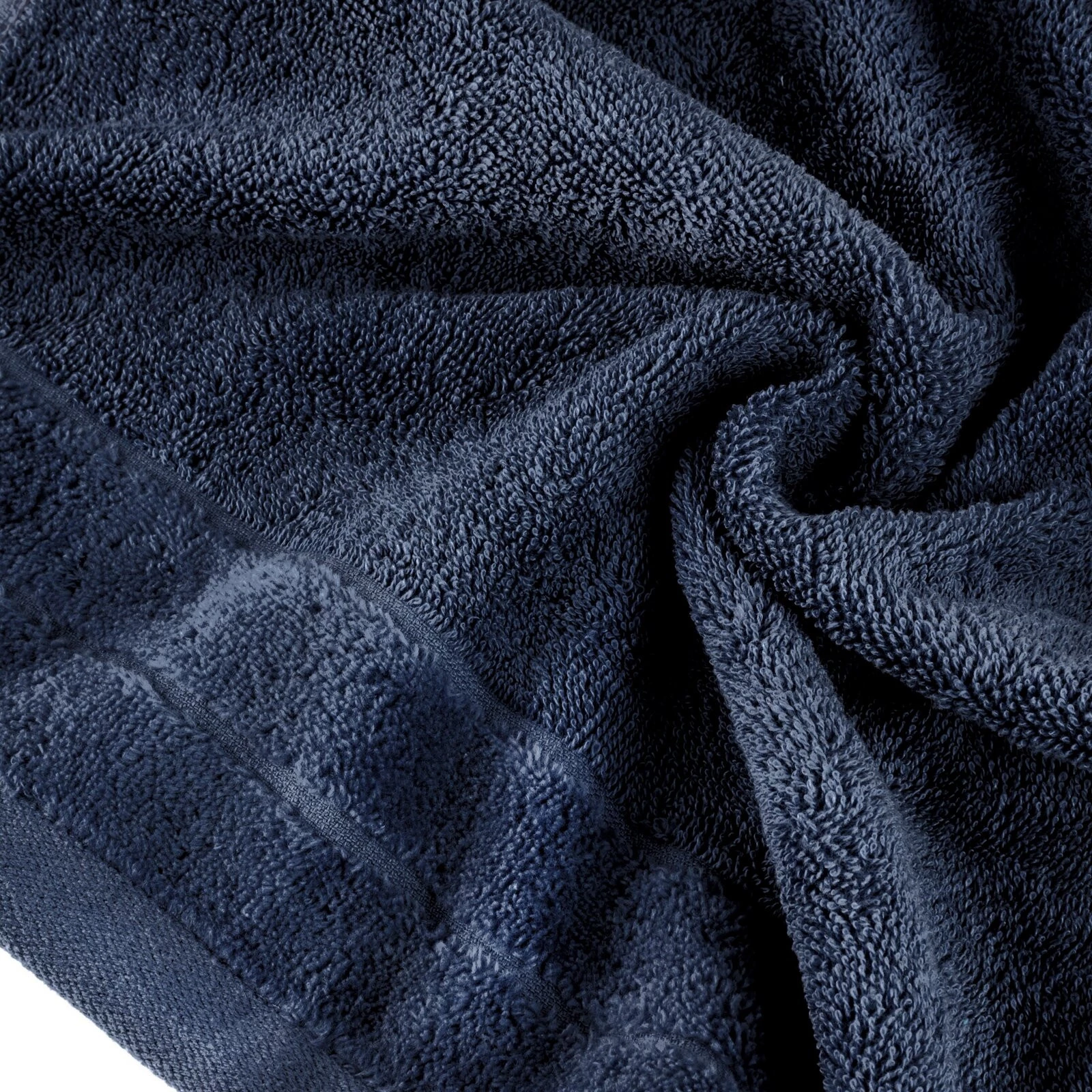 Elegancki ręcznik z delikatnej i bardzo chłonnej tkaniny frotte, jednokolorowy. Krawędzie zdobione subtelną bordiurą z welwetu. Łatwy w praniu, trwałe kolory. szerokość: 30 cm, długość: 50 cm, kolor: granatowy, Gramatura: 500 GSM, Skład: 100% bawełna