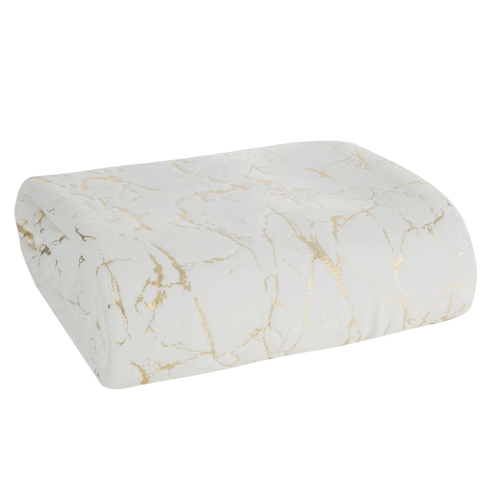 Koc z nadrukiem foliowym o wzorze marmurka szerokość: 150 cm, długość: 200 cm, kolor: biały, Gramatura: 250 GSM, Skład: 100% poliester
