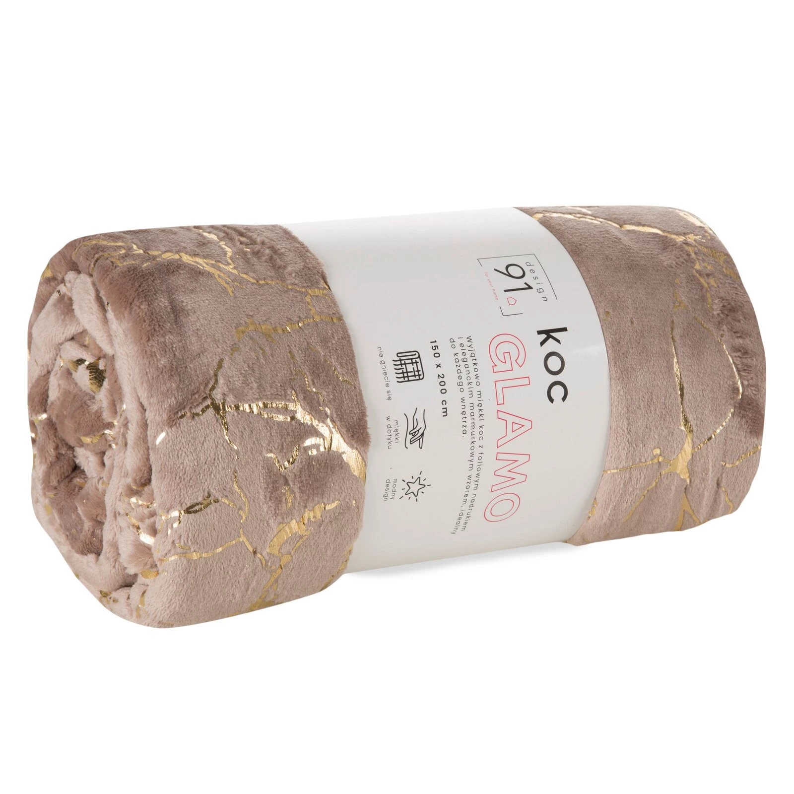 - Koc z nadrukiem foliowym o wzorze marmurka szerokość: 150 cm, długość: 200 cm, kolor: beżowy, Gramatura: 250 GSM, Skład: 100% poliester