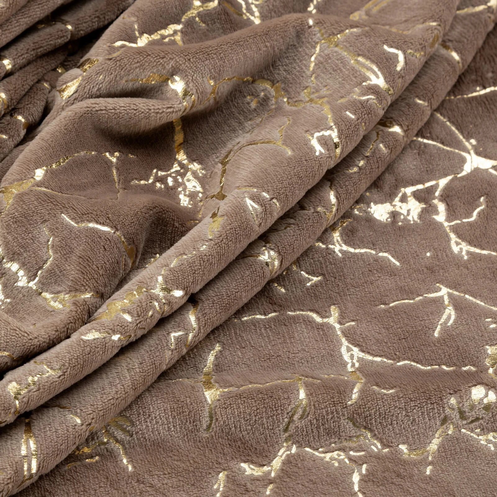 Koc z nadrukiem foliowym o wzorze marmurka szerokość: 150 cm, długość: 200 cm, kolor: beżowy, Gramatura: 250 GSM, Skład: 100% poliester