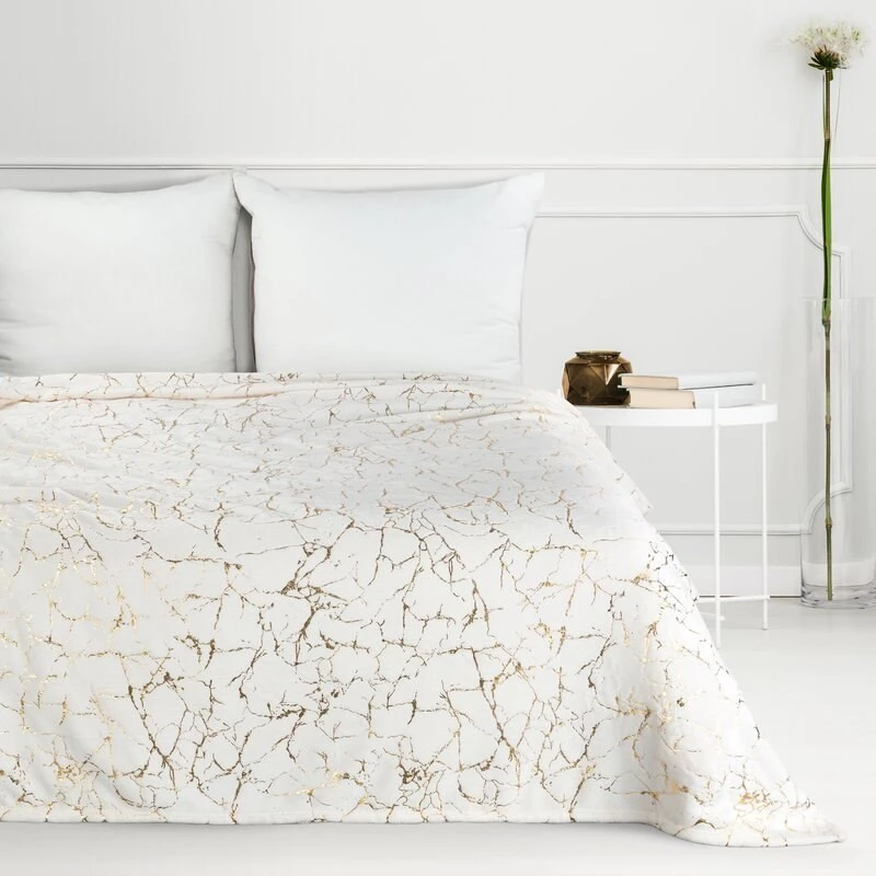 Koc z nadrukiem foliowym o wzorze marmurka szerokość: 150 cm, długość: 200 cm, kolor: kremowy, Gramatura: 250 GSM, Skład: 100% poliester