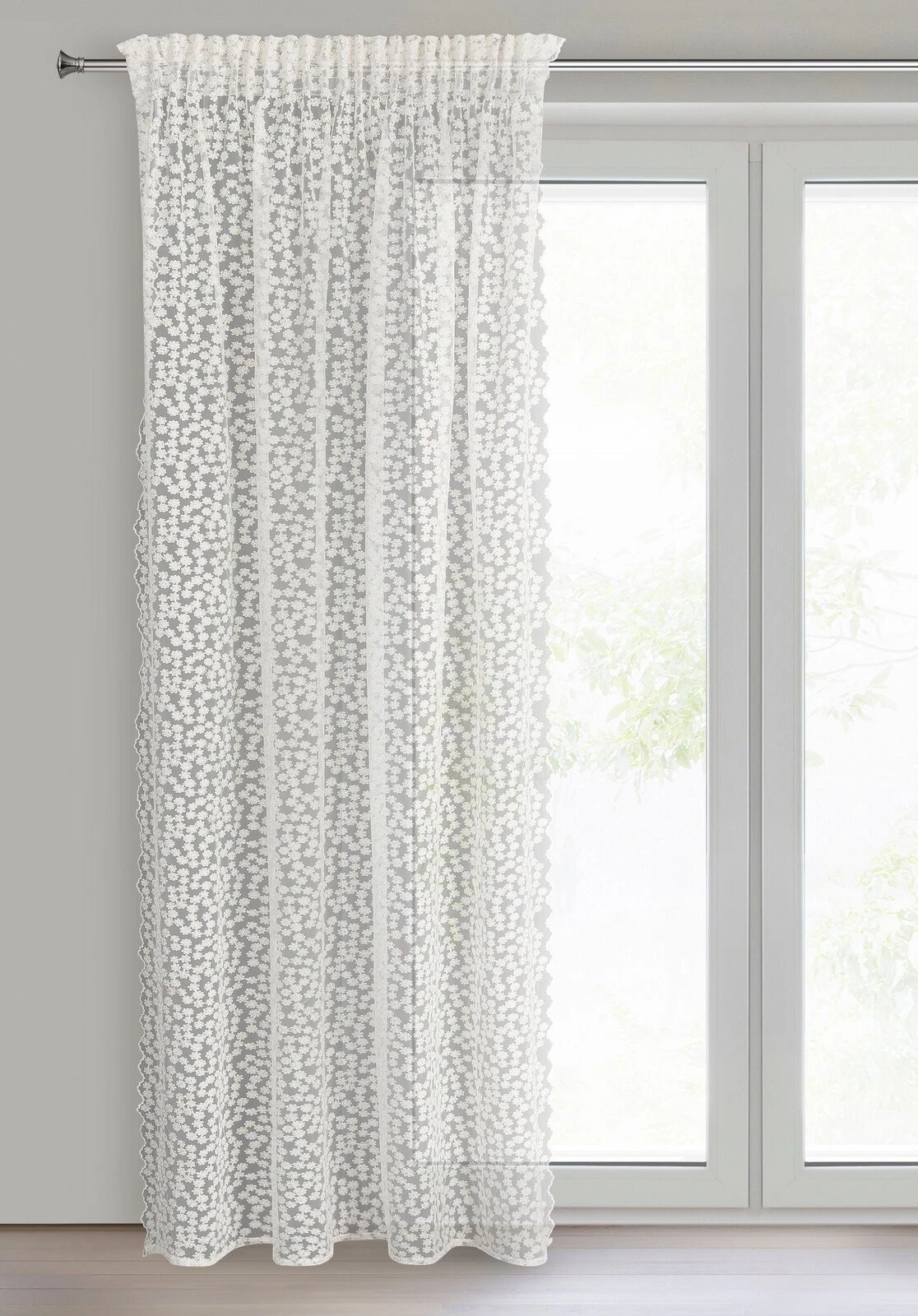 Firana gotowa z ozdobnym haftem szerokość: 130 cm, długość: 270 cm, kolor: biały, Gramatura: 90 GSM, Skład: 100% poliester
