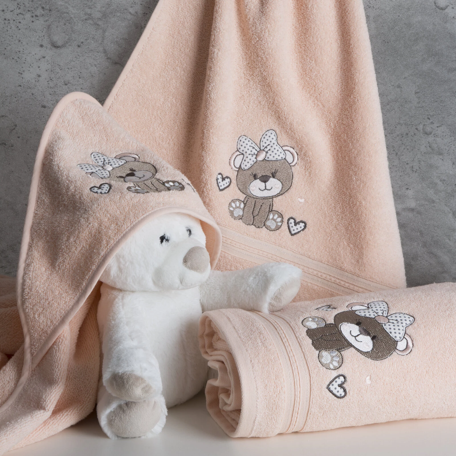Ręcznik dziecięcy z aplikacją szerokość: 100 cm, długość: 100 cm, kolor: jasnopomarańczowy, Gramatura: 350 GSM, Skład: 100% bawełna