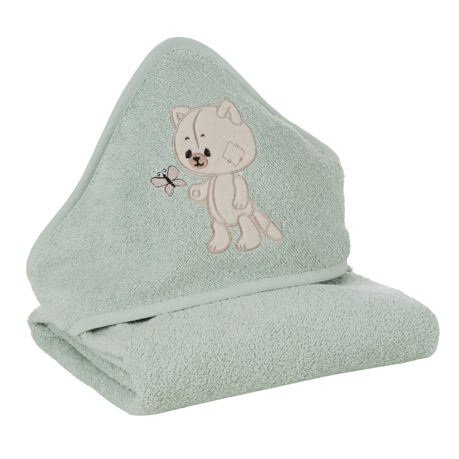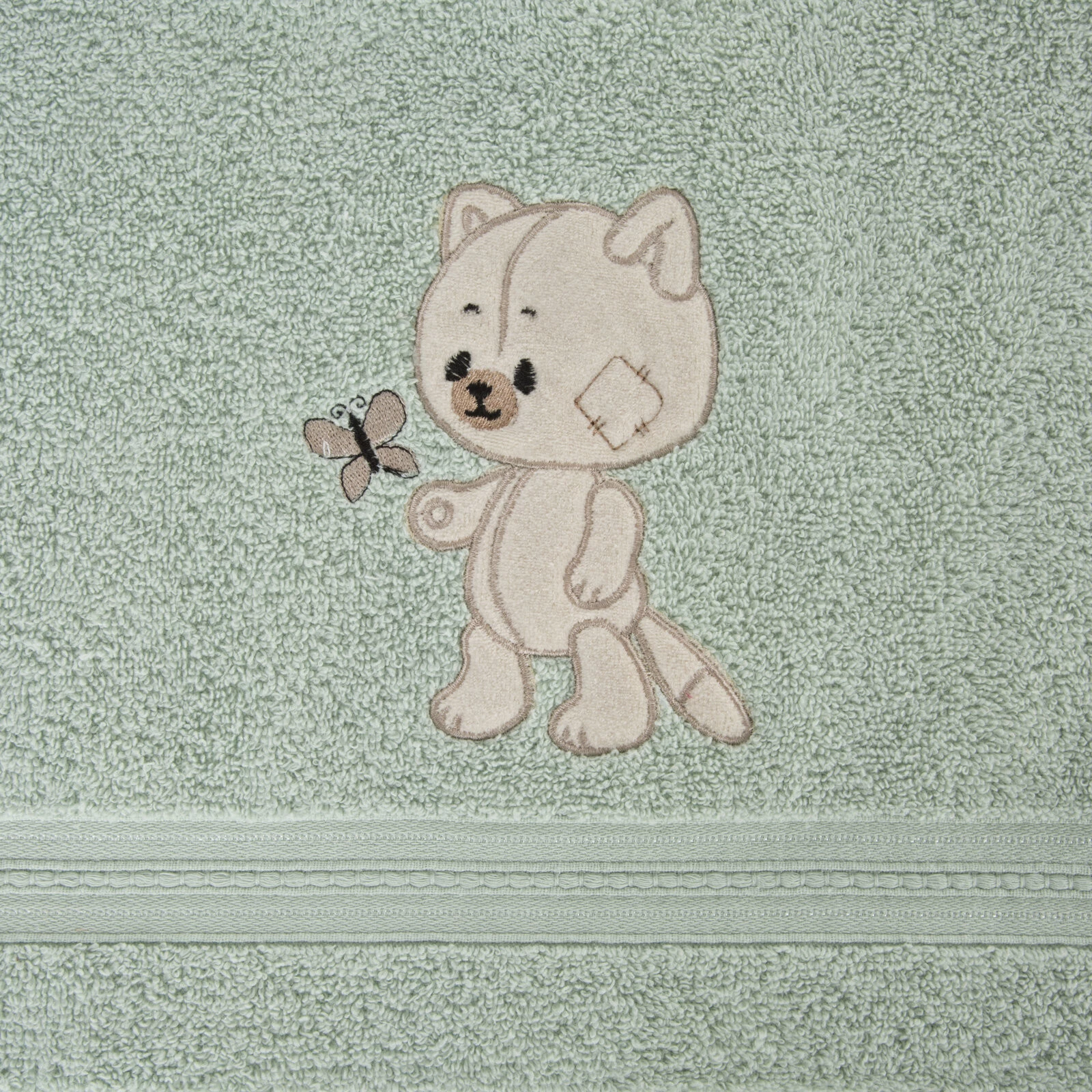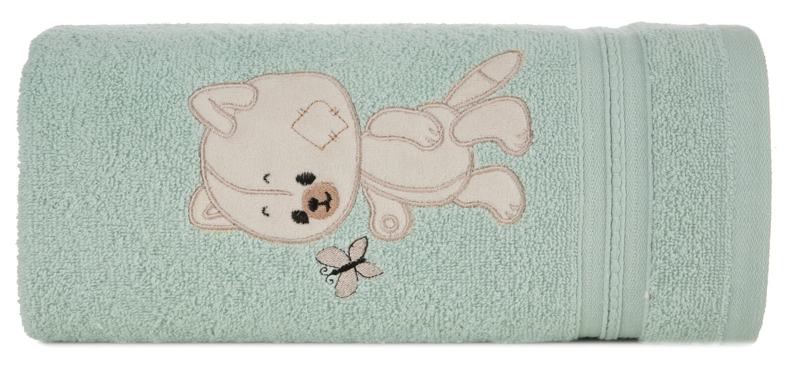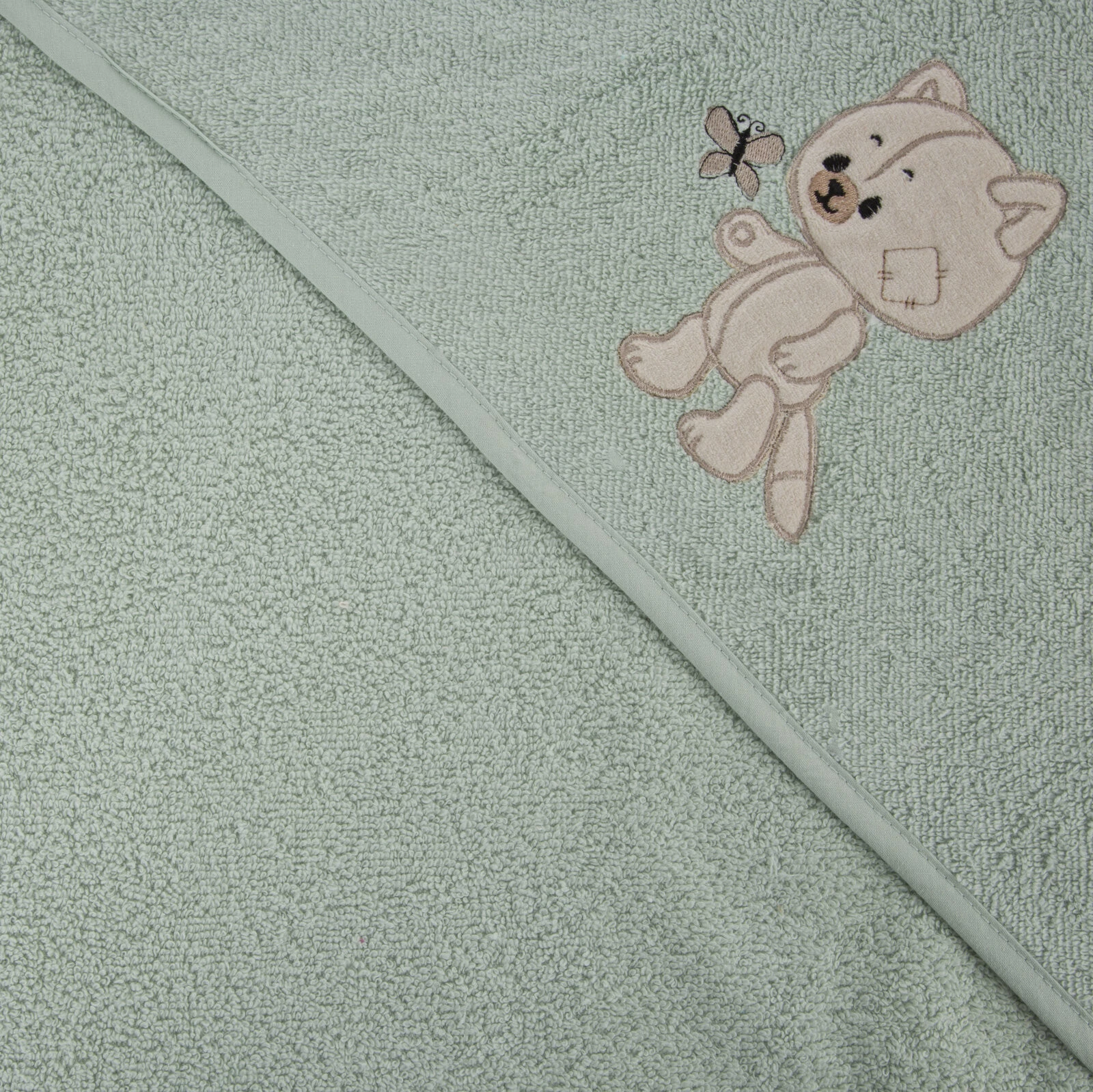 Ręcznik dziecięcy z aplikacją szerokość: 100 cm, długość: 100 cm, kolor: miętowy, Gramatura: 350 GSM, Skład: 100% bawełna