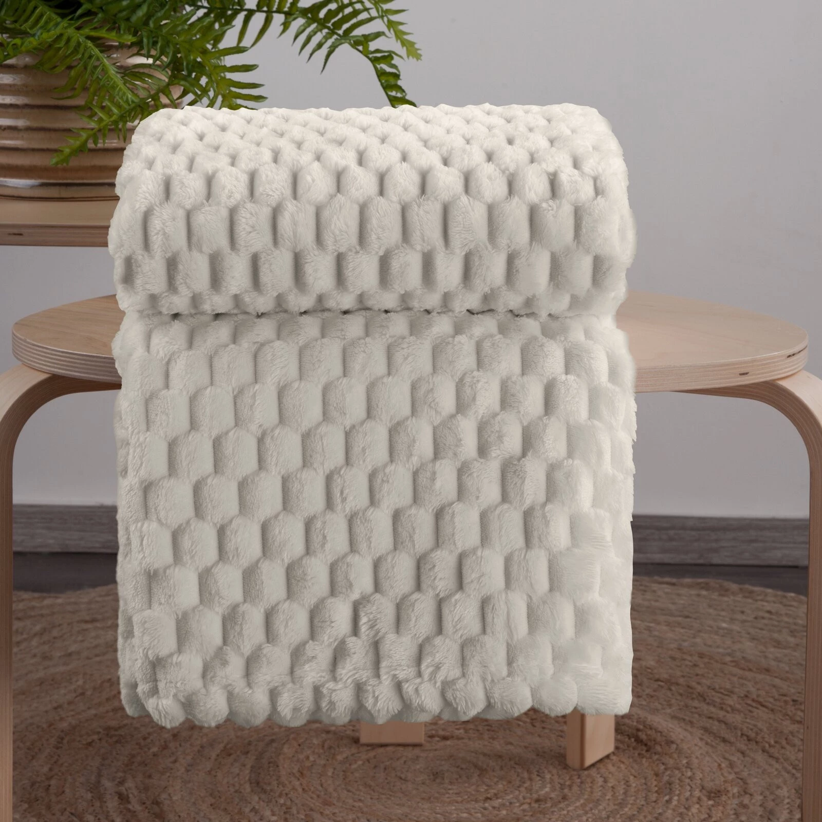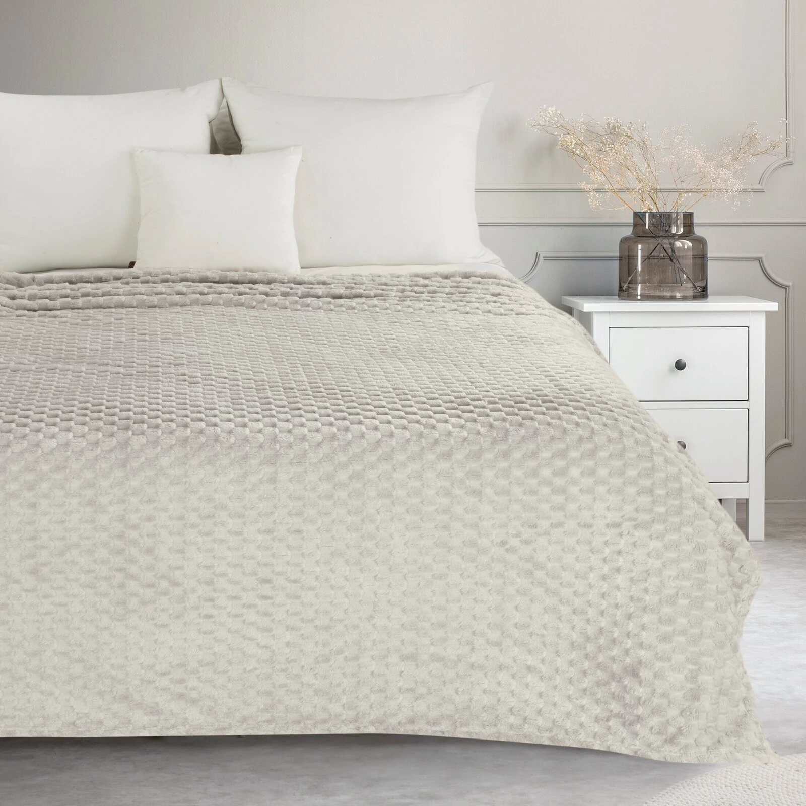 Koc flano bardzo miękki w dotyku z efektem 3d szerokość: 150 cm, długość: 200 cm, kolor: beżowy, Gramatura: 260 GSM, Skład: 100% poliester