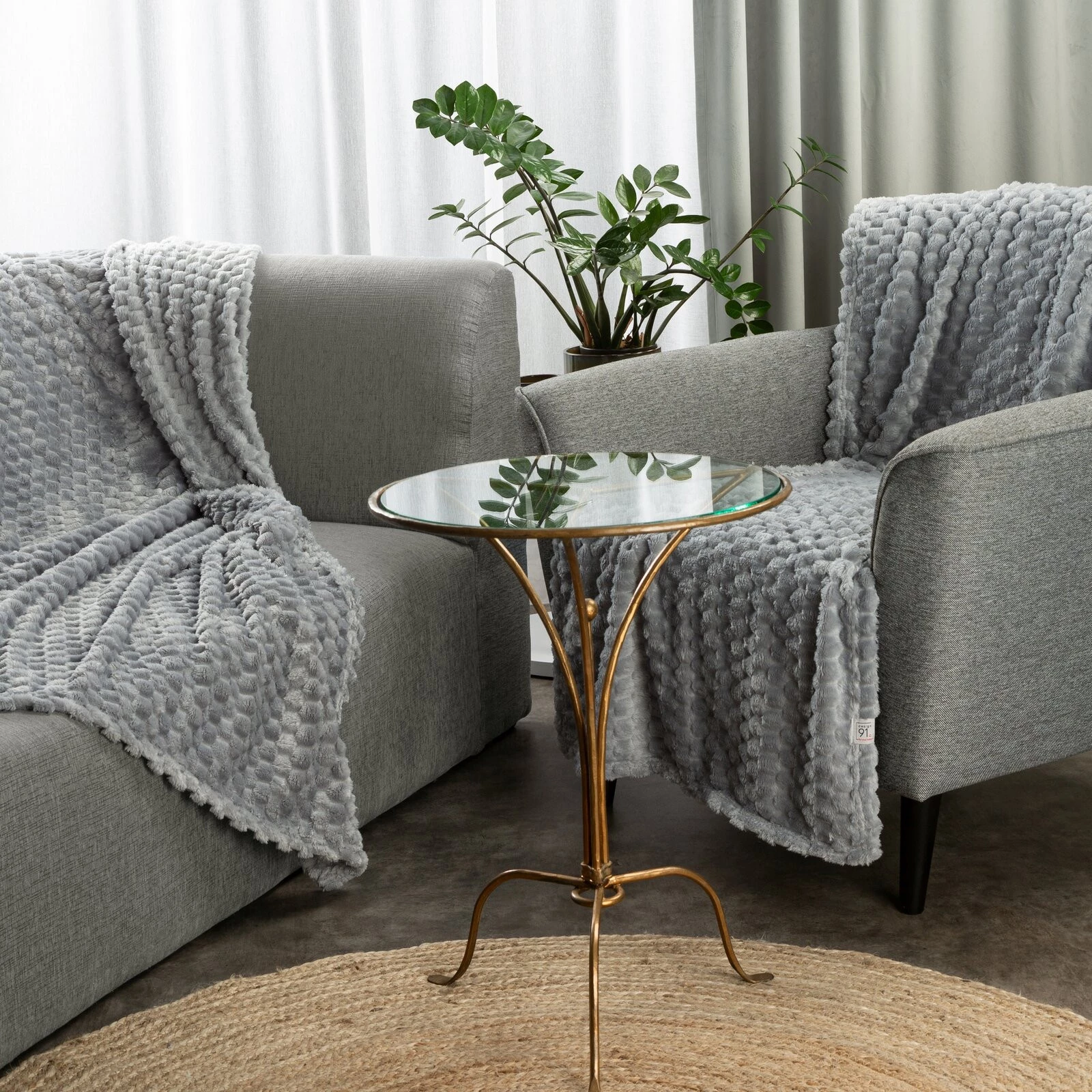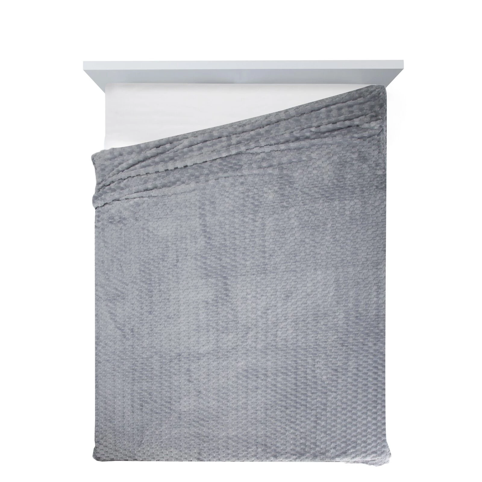 Koc flano bardzo miękki w dotyku z efektem 3d szerokość: 170 cm, długość: 210 cm, kolor: srebrny, Gramatura: 260 GSM, Skład: 100% poliester
