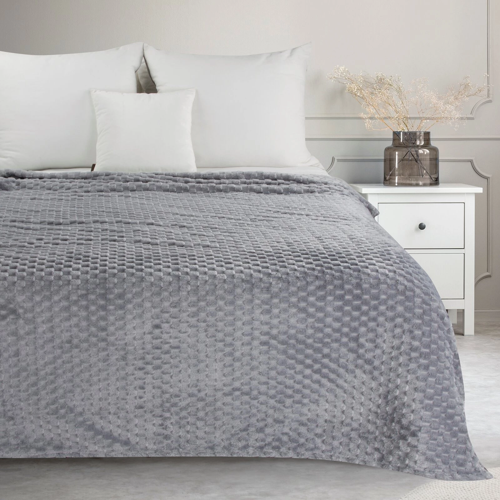Koc flano bardzo miękki w dotyku z efektem 3d szerokość: 200 cm, długość: 220 cm, kolor: srebrny, Gramatura: 260 GSM, Skład: 100% poliester