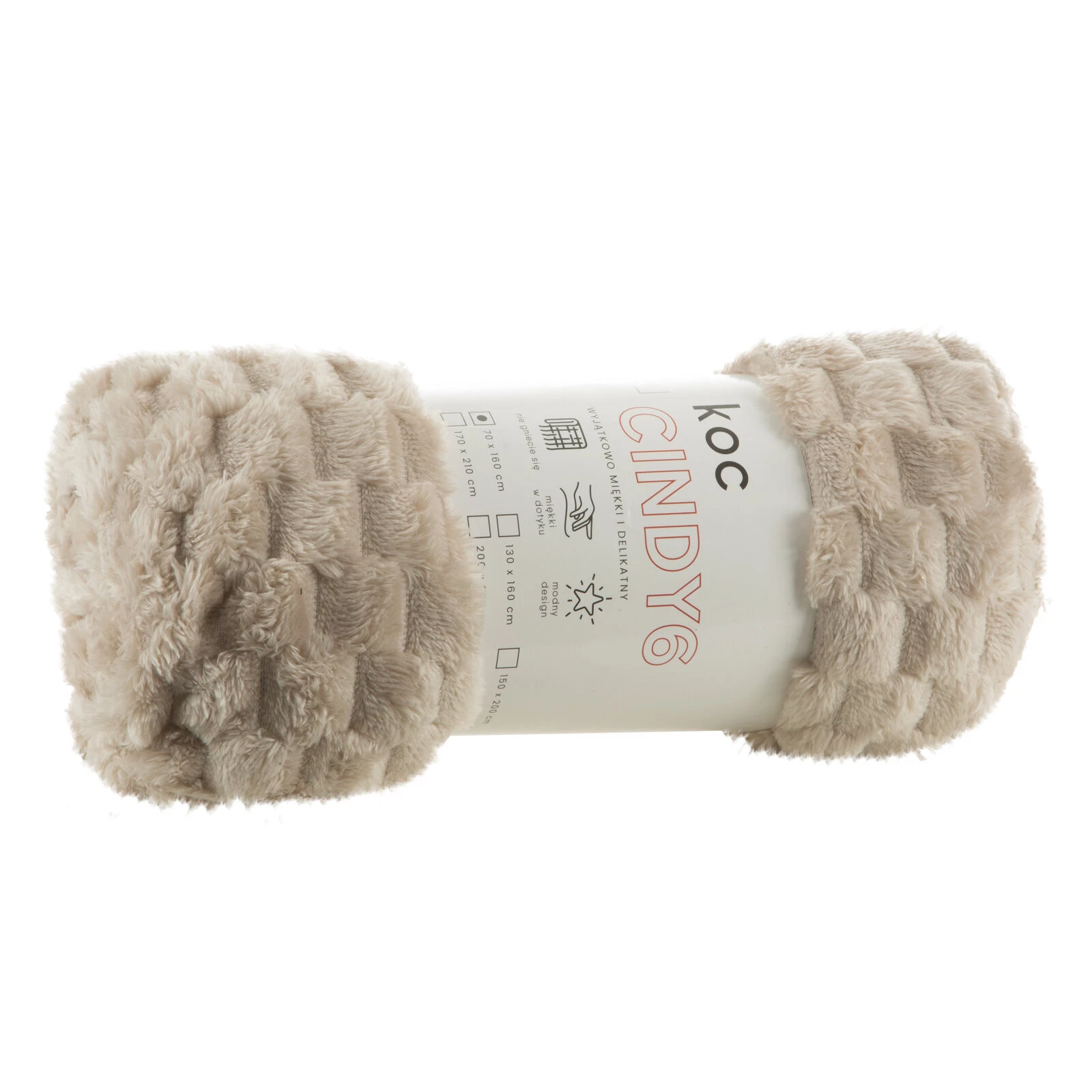 Koc flano bardzo miękki w dotyku z efektem 3d szerokość: 70 cm, długość: 160 cm, kolor: beżowy, Gramatura: 260 GSM, Skład: 100% poliester