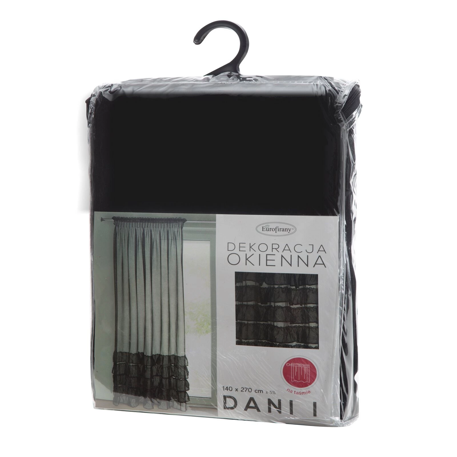 Firana gotowa zdobiona w dolnej części falbankami szerokość: 140 cm, długość: 250 cm, kolor: czarny, Gramatura: 70 GSM, Skład: 100% poliester