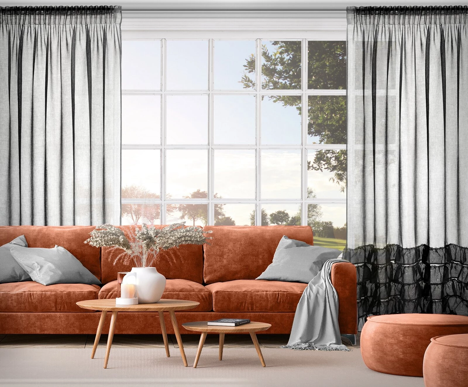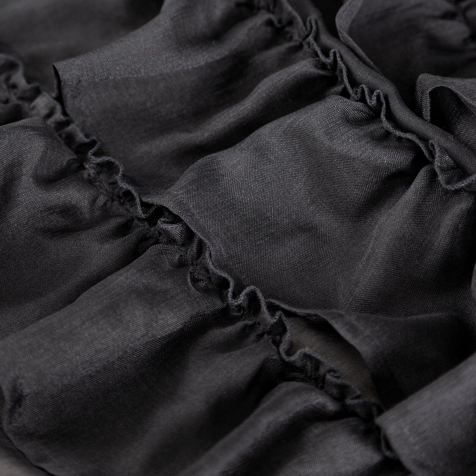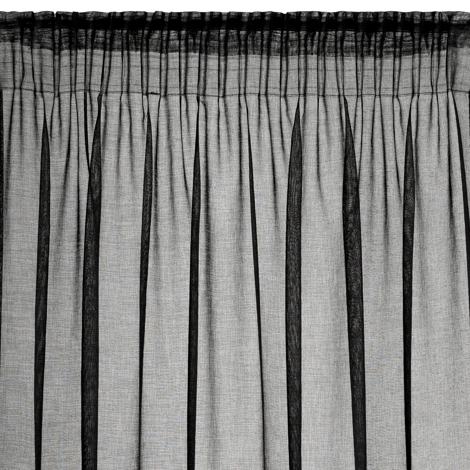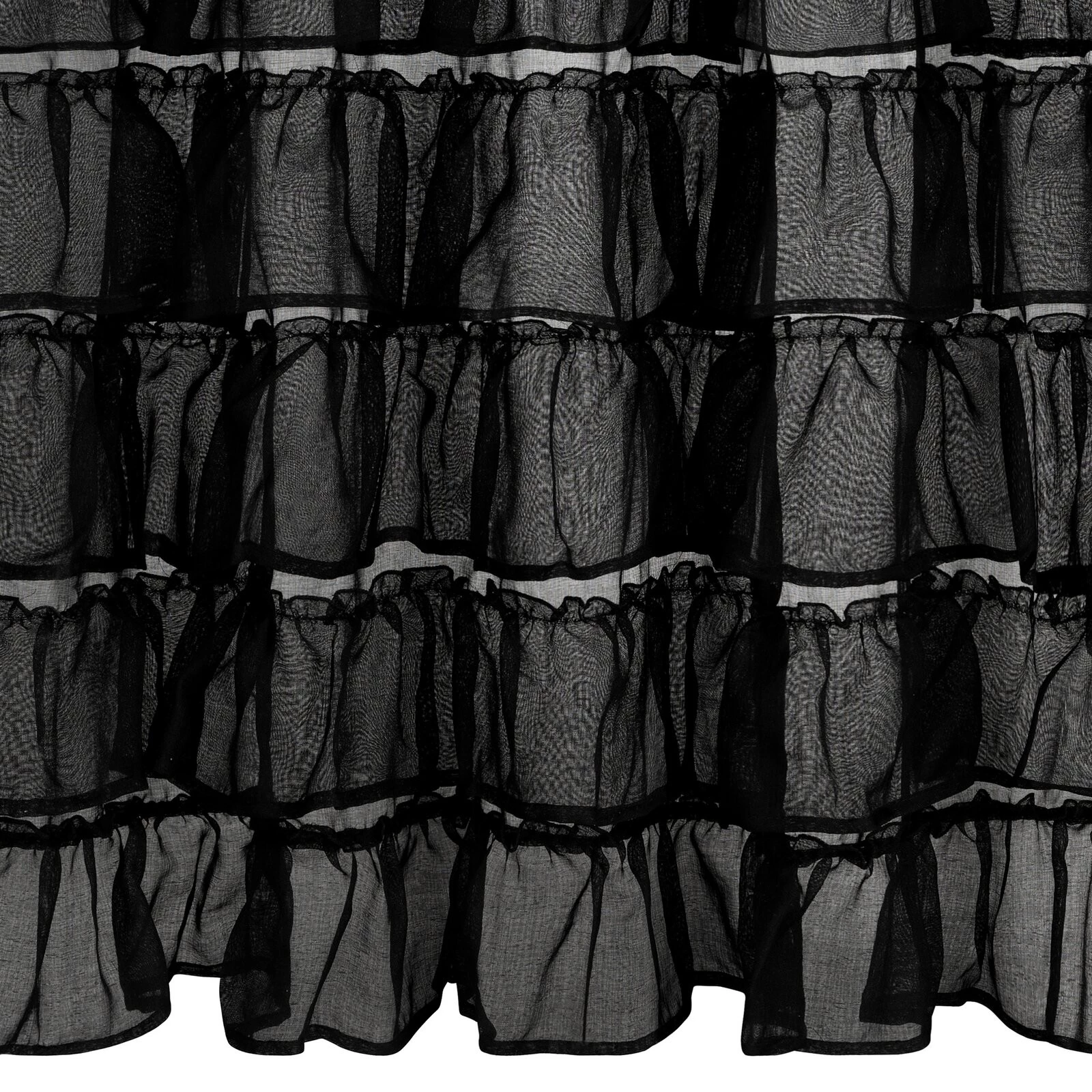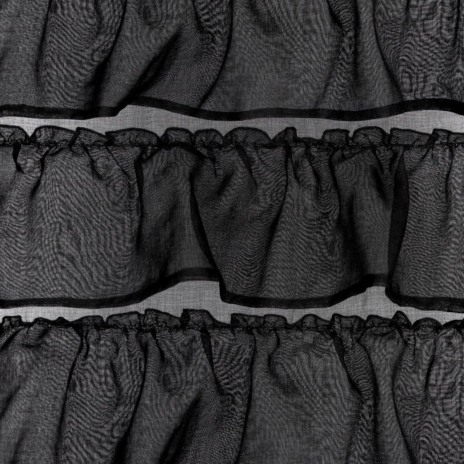 - Firana gotowa zdobiona w dolnej części falbankami szerokość: 140 cm, długość: 250 cm, kolor: czarny, Gramatura: 70 GSM, Skład: 100% poliester