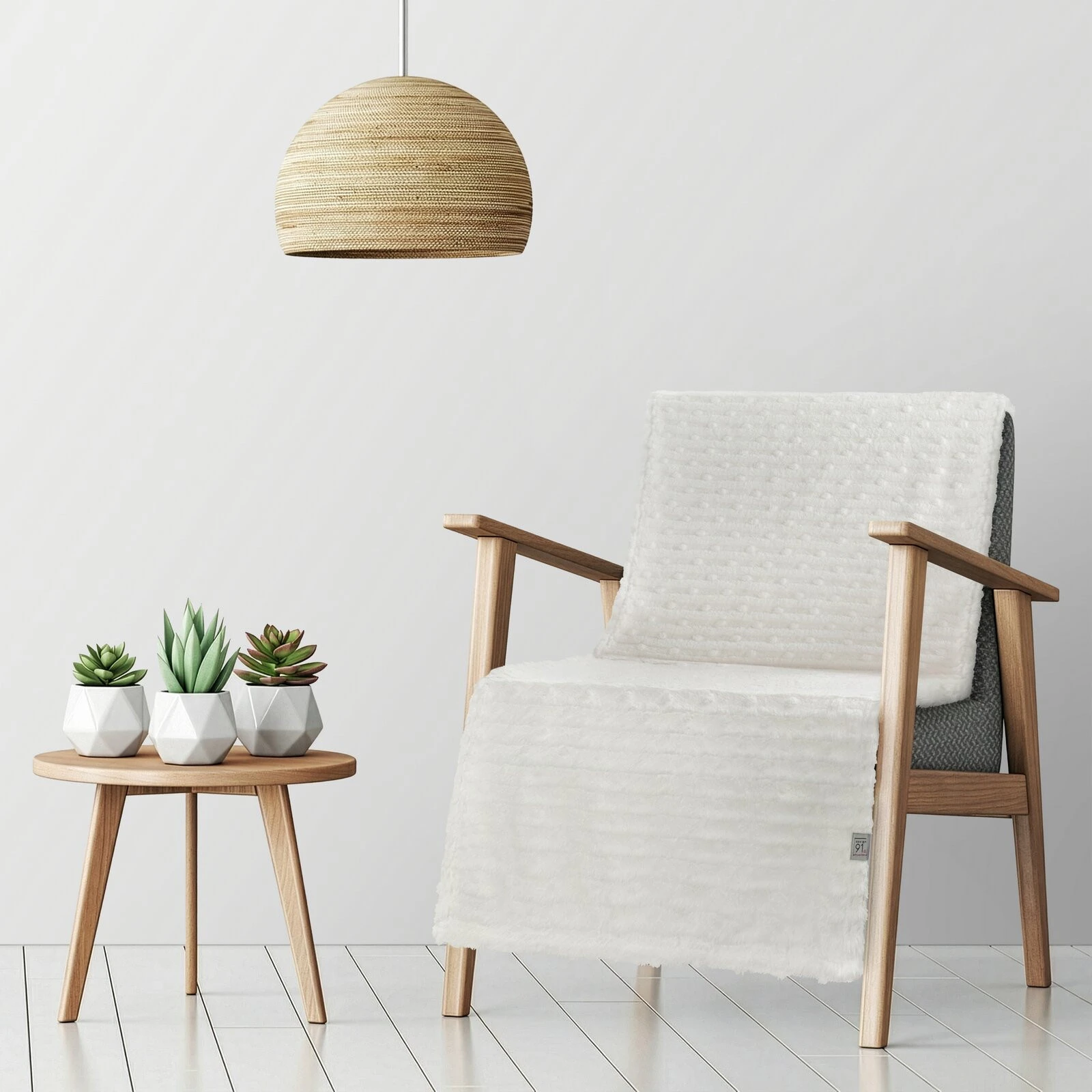 Miękki w dotyku jednokolorowy koc żakardowy szerokość: 70 cm, długość: 160 cm, kolor: biały, Gramatura: 240 GSM GSM, Skład: 100% poliester