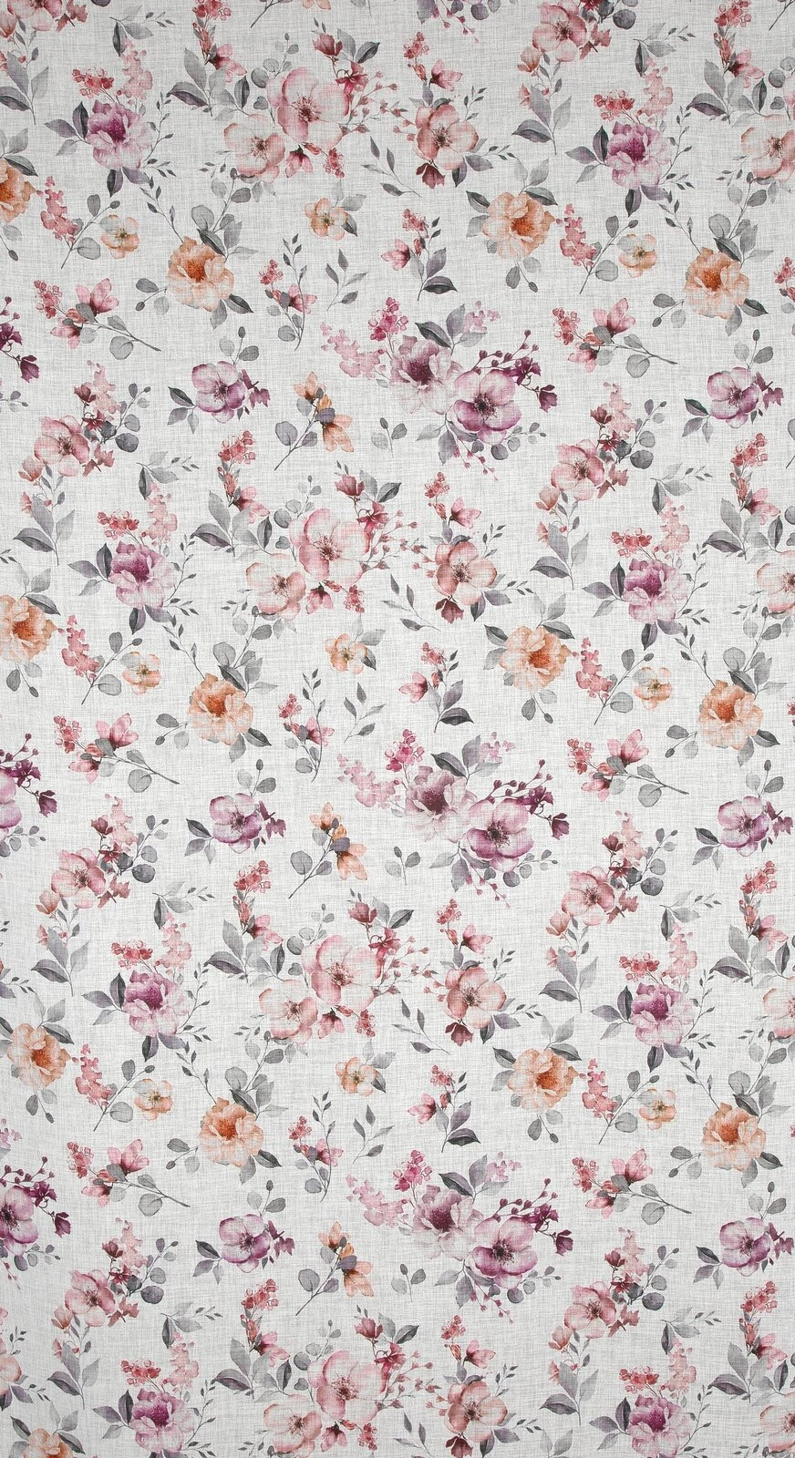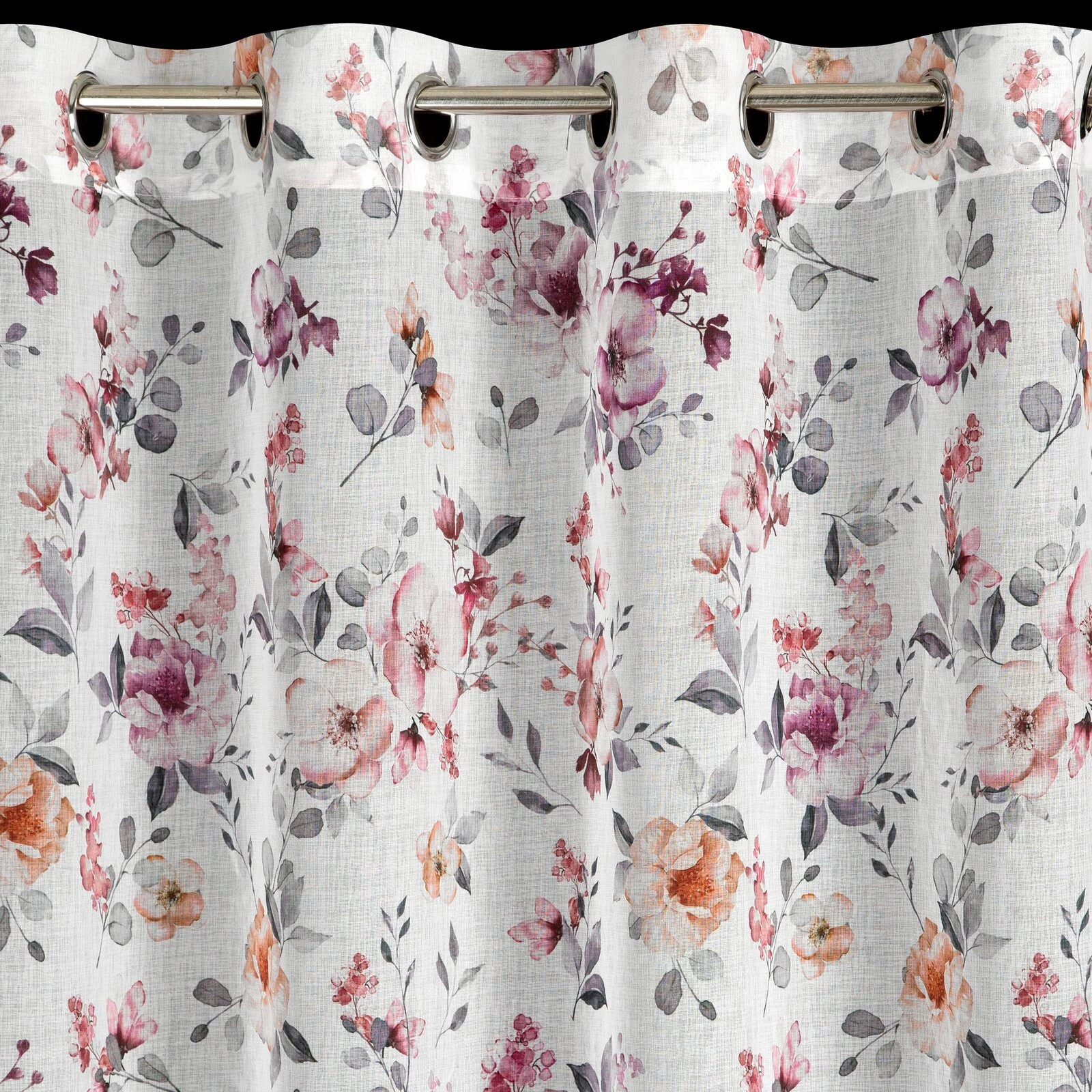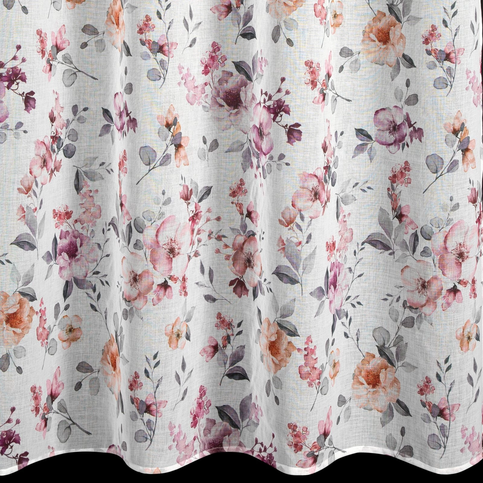 Zasłona gotowa z nadrukiem kwiatowym szerokość: 140 cm, długość: 240 cm, kolor: biały, Gramatura: 75 GSM, Skład: 100% poliester
