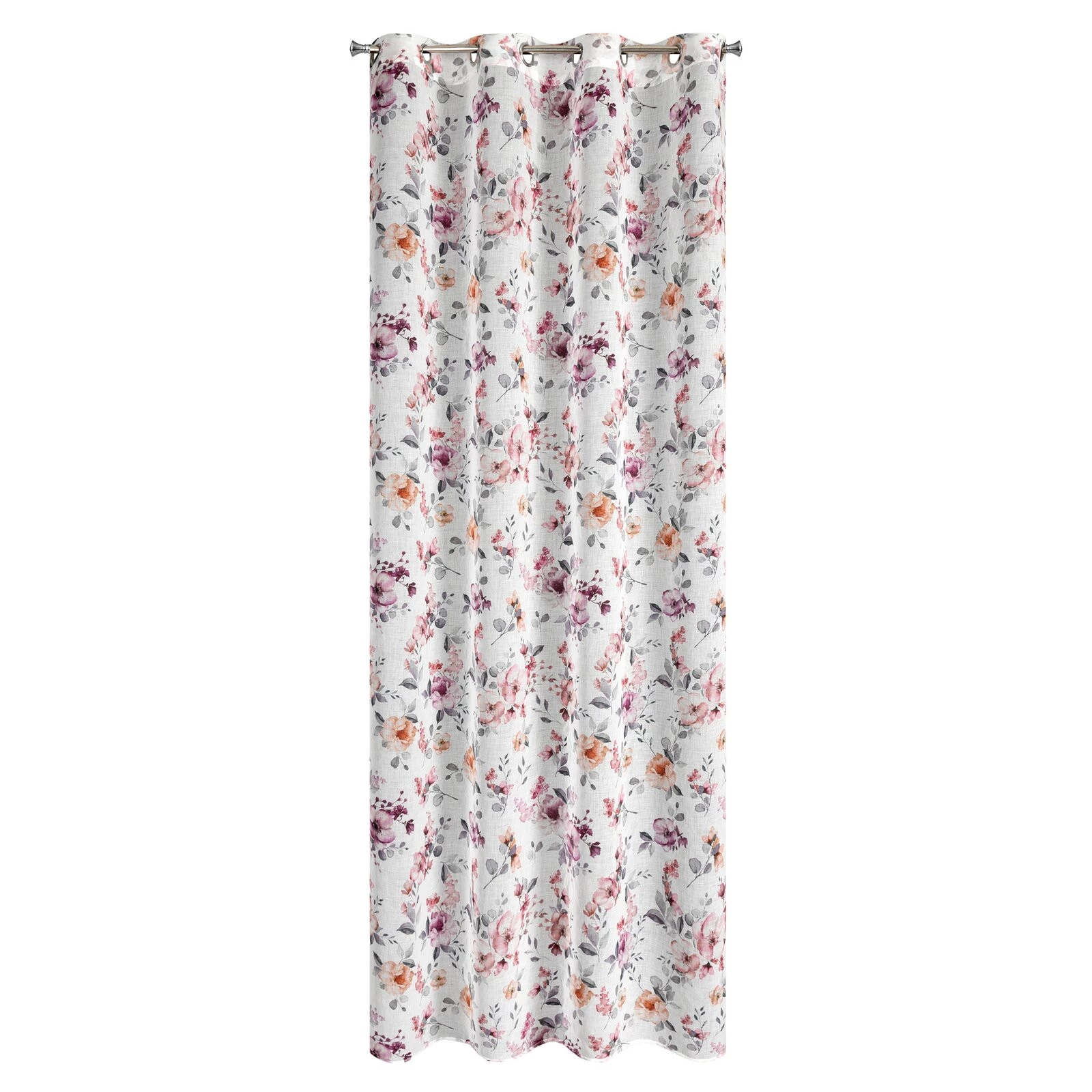 - Zasłona gotowa z nadrukiem kwiatowym szerokość: 140 cm, długość: 240 cm, kolor: biały, Gramatura: 75 GSM, Skład: 100% poliester