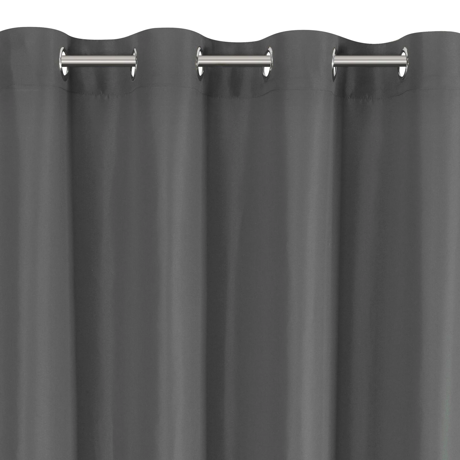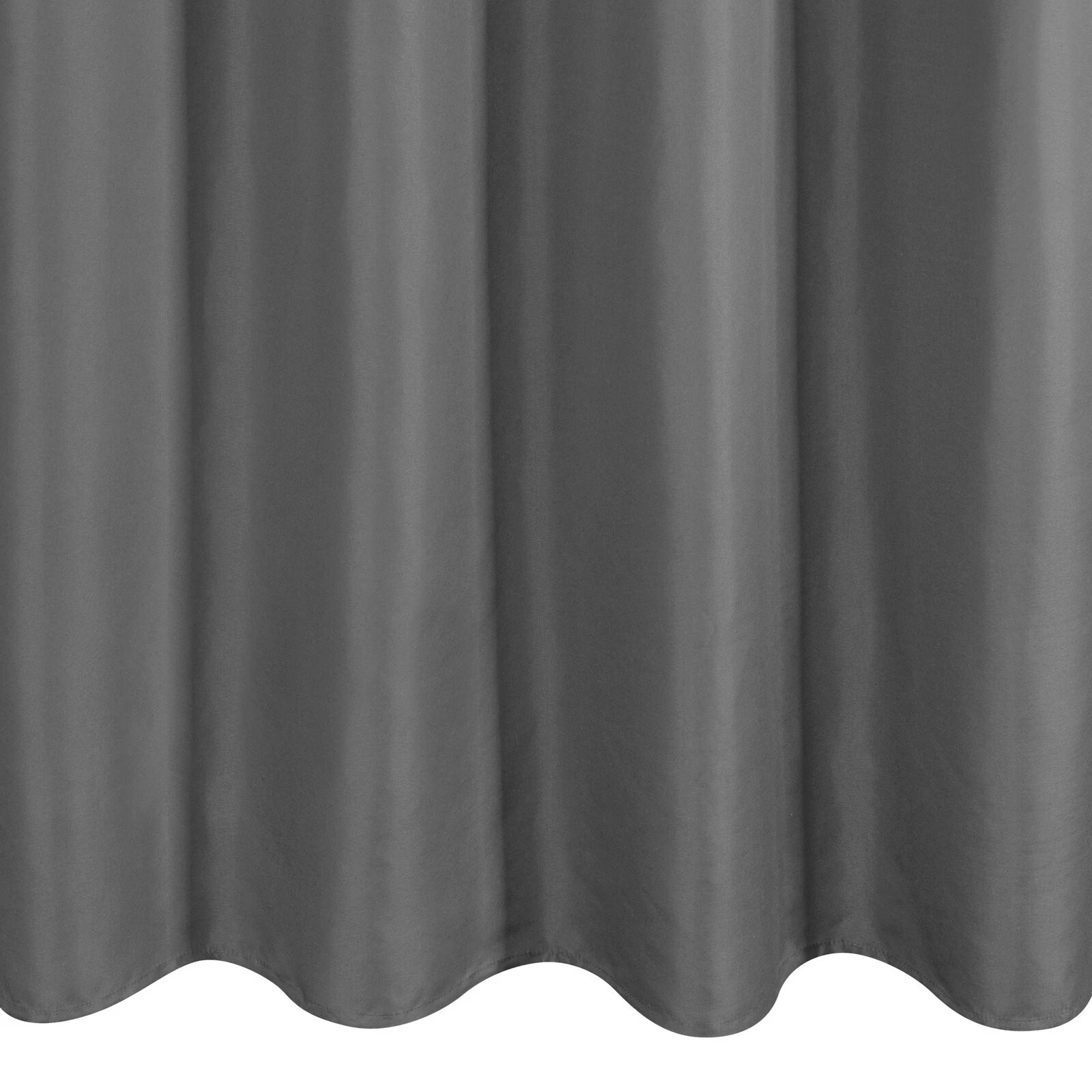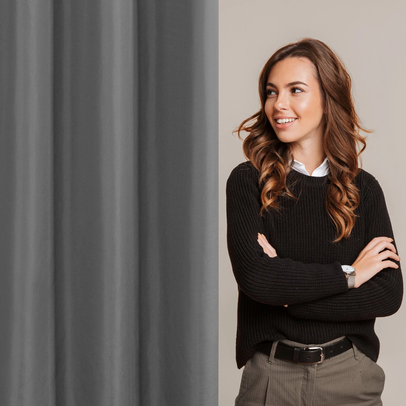 - Zasłona jednokolorowa matowa szerokość: 140 cm, długość: 250 cm, kolor: grafitowy, Gramatura: 75 GSM, Skład: 100% poliester