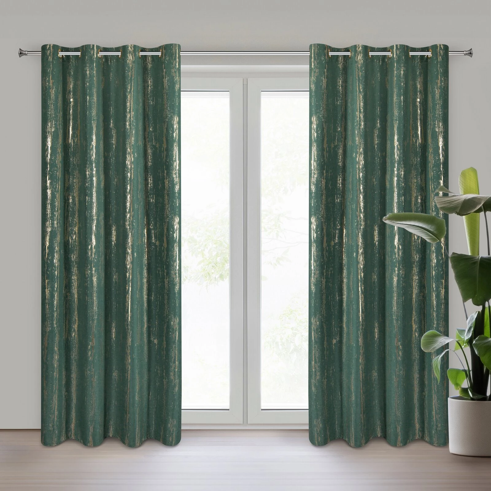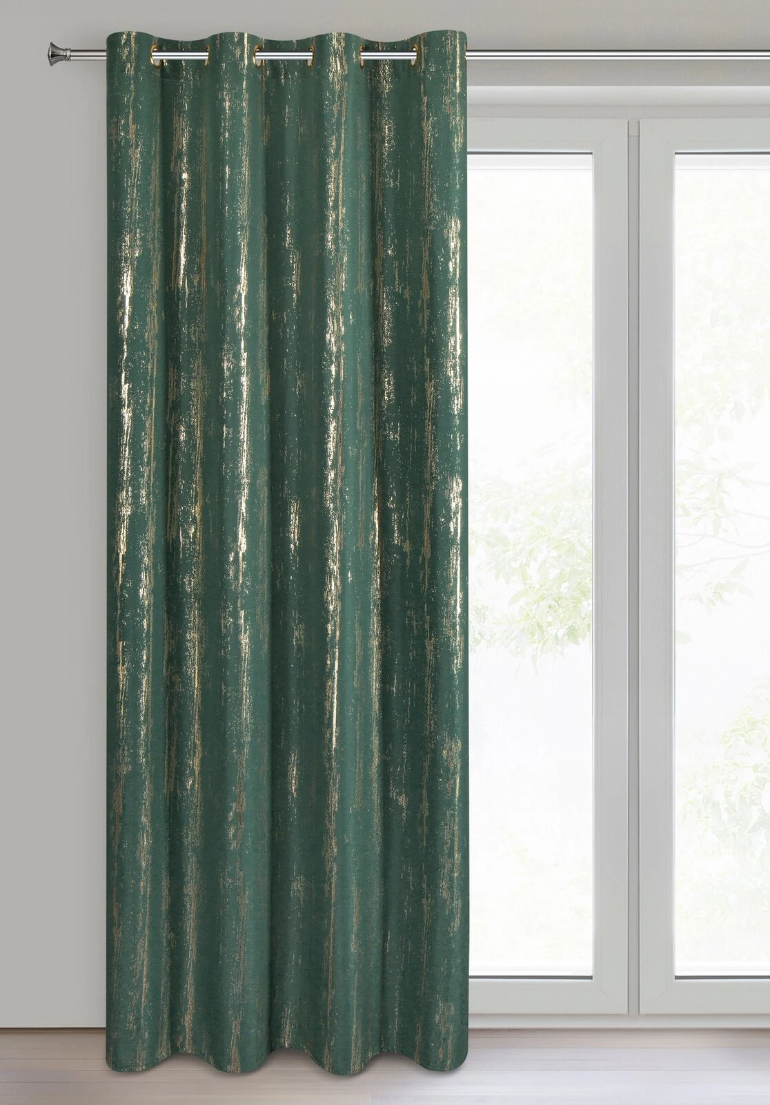 Zasłona gotowa z błyszczącym nadrukiem szerokość: 140 cm, długość: 250 cm, kolor: zielony, Gramatura: 75 GSM, Skład: 100% poliester