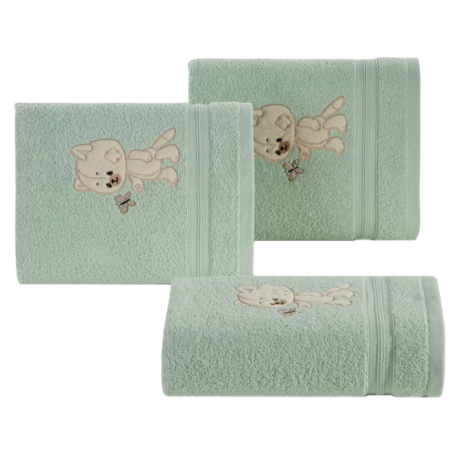 Ręcznik dziecięcy z aplikacją szerokość: 50 cm, długość: 90 cm, kolor: miętowy, Gramatura: 450 GSM, Skład: 100% bawełna