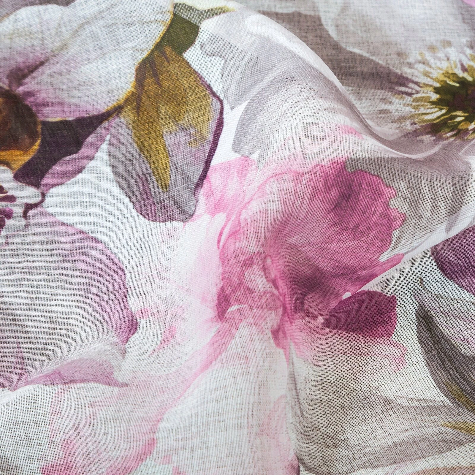 Zasłona z etaminy z nadrukiem szerokość: 140 cm, długość: 250 cm, kolor: ciemnoróżowy, Gramatura: 75 GSM, Skład: 100% poliester