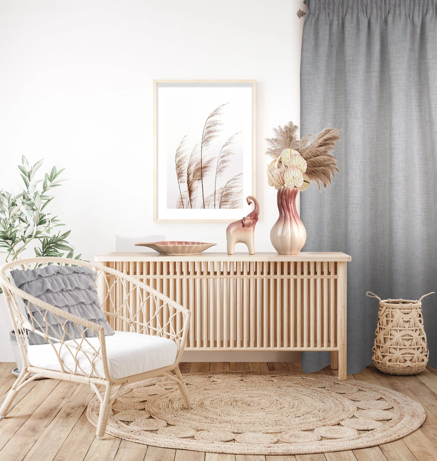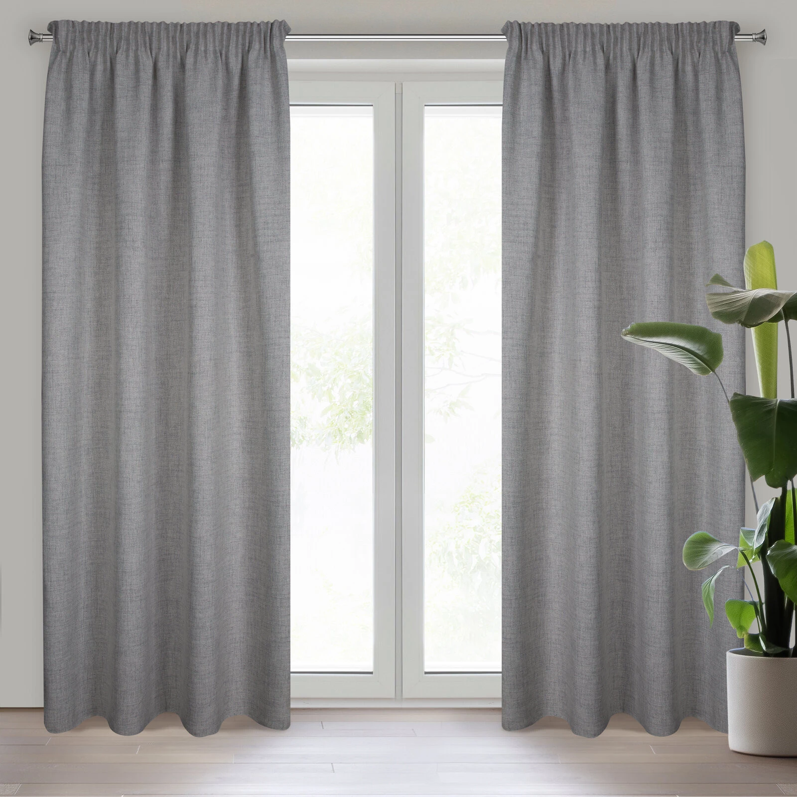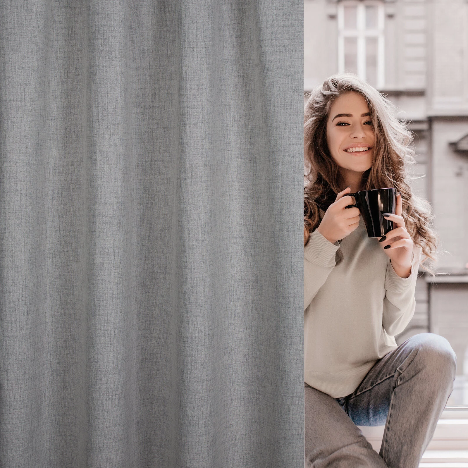 - Zasłona gotowa w stylu eco szerokość: 140 cm, długość: 270 cm, kolor: popielaty, Skład: 100% poliester