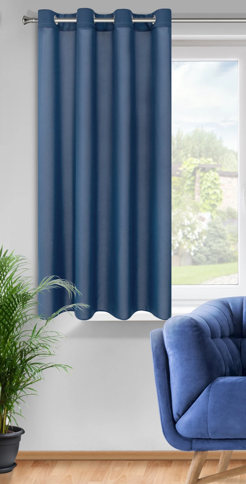 - Zasłona gotowa jednokolorowa matowa szerokość: 140 cm, długość: 175 cm, kolor: ciemnoniebieski, Gramatura: 140 GSM, Skład: 100% poliester