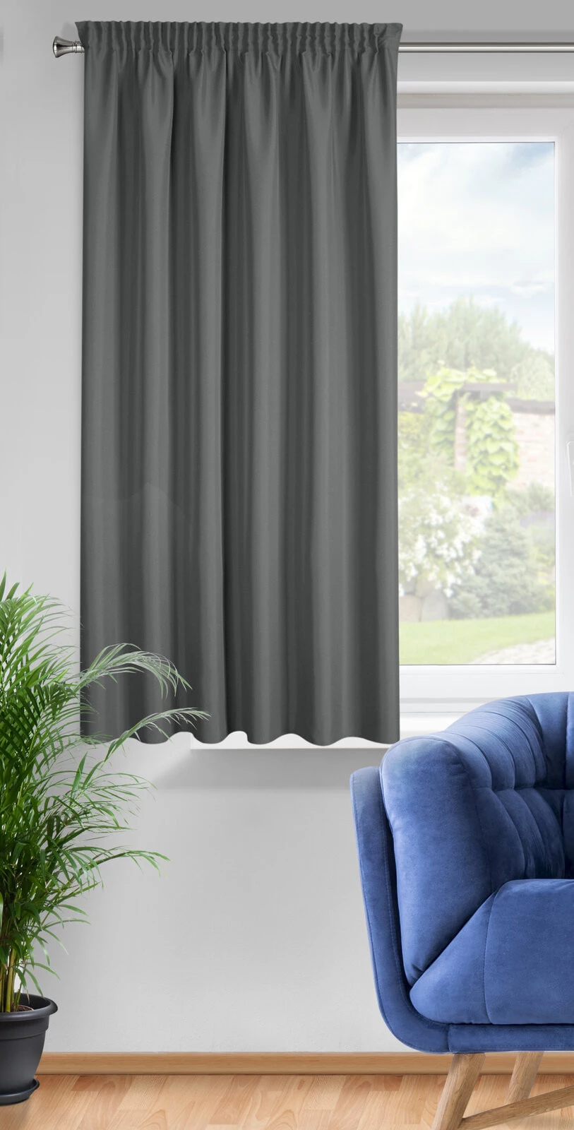 Zasłona gotowa jednokolorowa matowa szerokość: 140 cm, długość: 175 cm, kolor: grafitowy, Gramatura: 140 GSM, Skład: 100% poliester