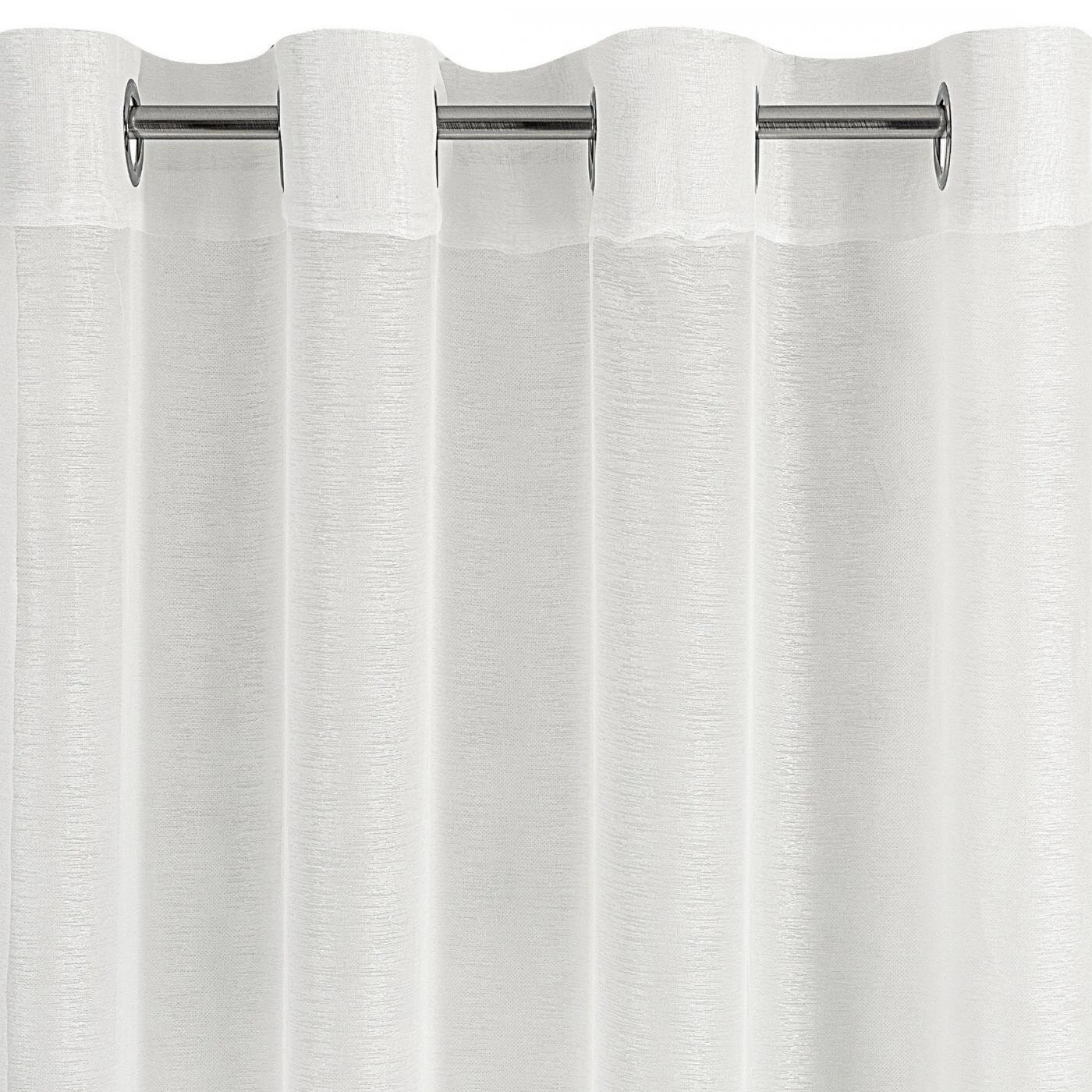Delikatna firana uszyta z tkaniny o strukturze drobnego deszczyku doskonale przepuszcza światło. Łatwa w prasowaniu i praniu dekoracja. Wzór poziomy. szerokość: 140 cm, długość: 250 cm, kolor: kremowy, Gramatura: 50 GSM, Skład: 100% poliester