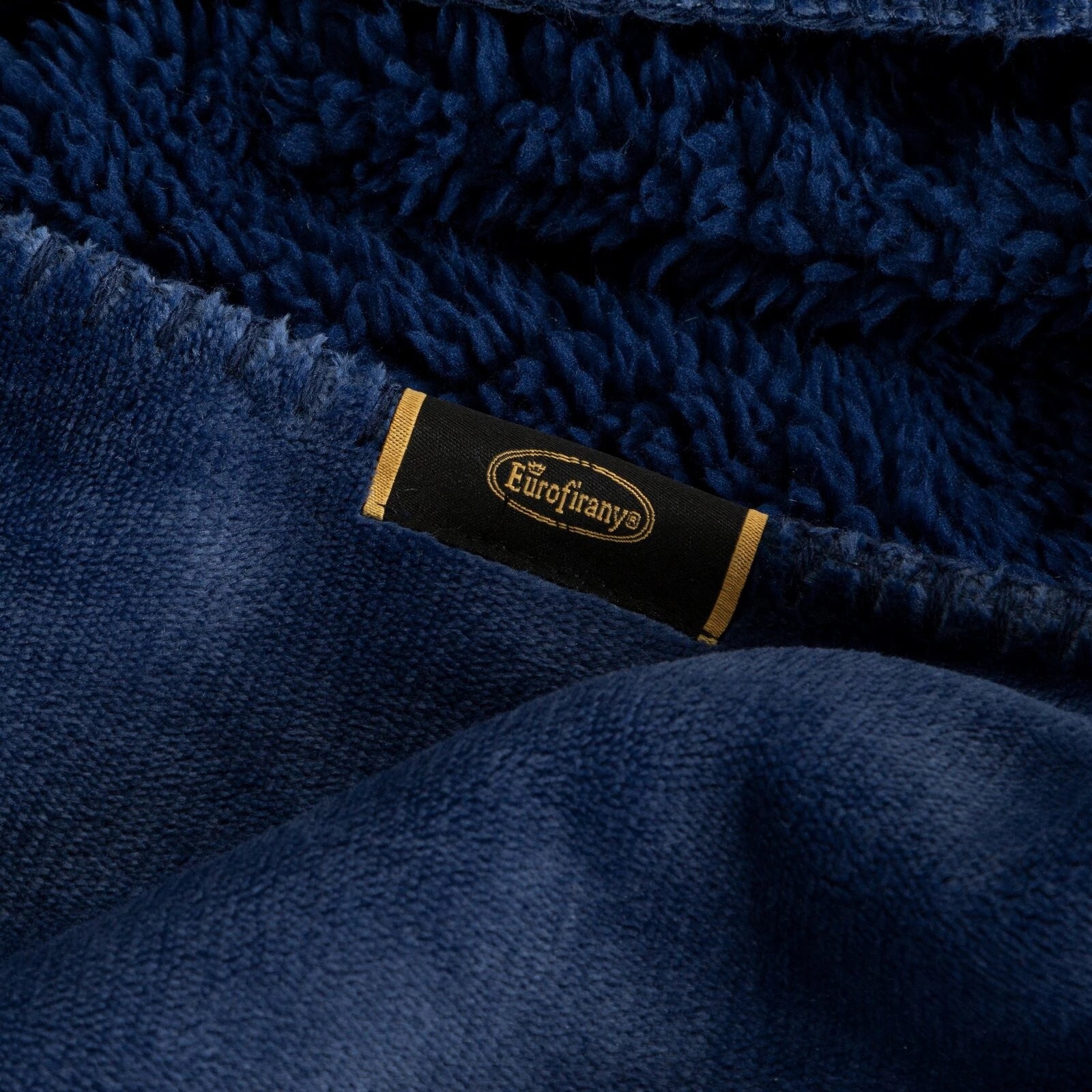 Miękki w dotyku koc jednokolorowy imitujący buklę szerokość: 150 cm, długość: 200 cm, kolor: granatowy, Gramatura: 170+170 GSM, Skład: 100% poliester