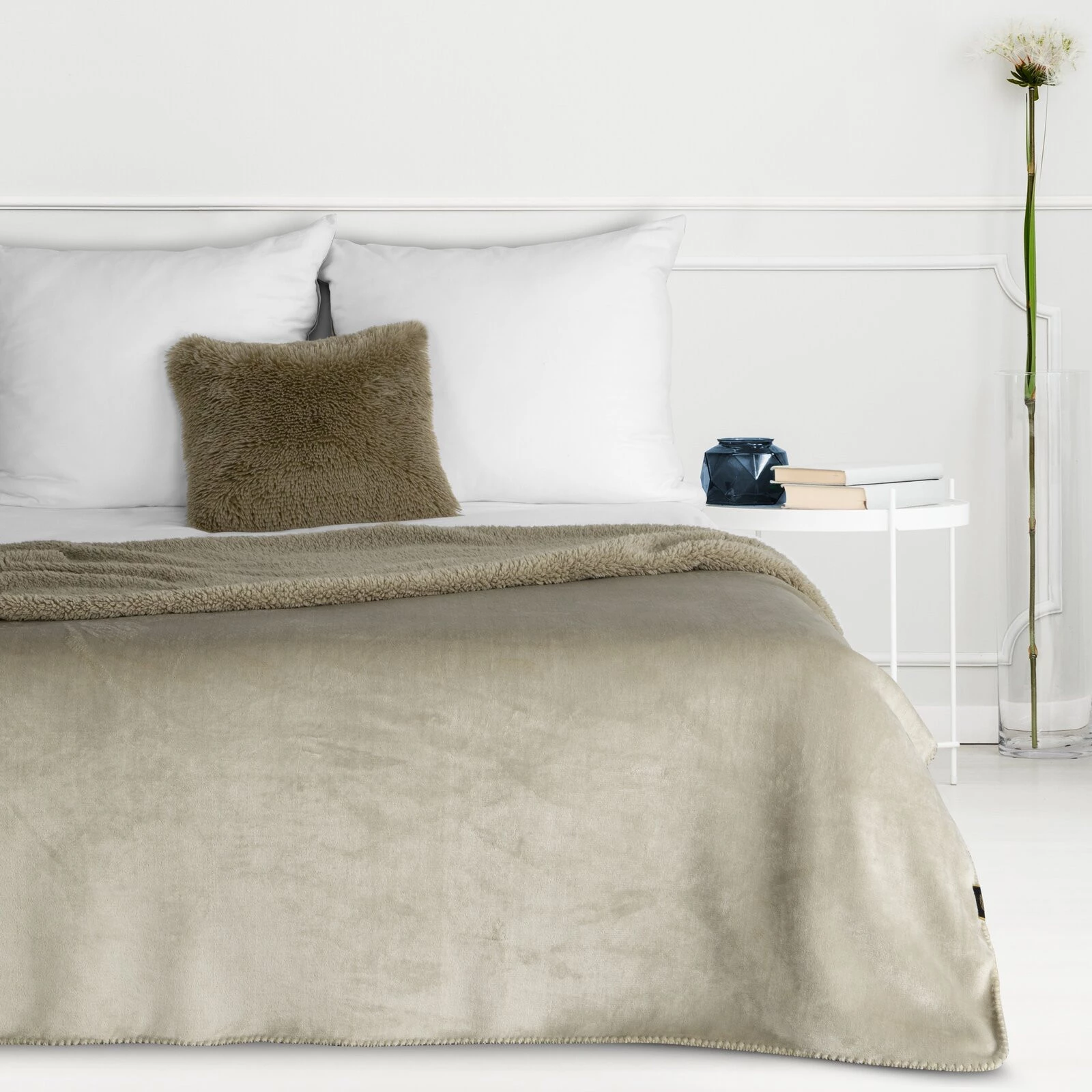 Miękki w dotyku koc jednokolorowy imitujący buklę szerokość: 170 cm, długość: 210 cm, kolor: beżowy, Gramatura: 170+170 GSM, Skład: 100% poliester