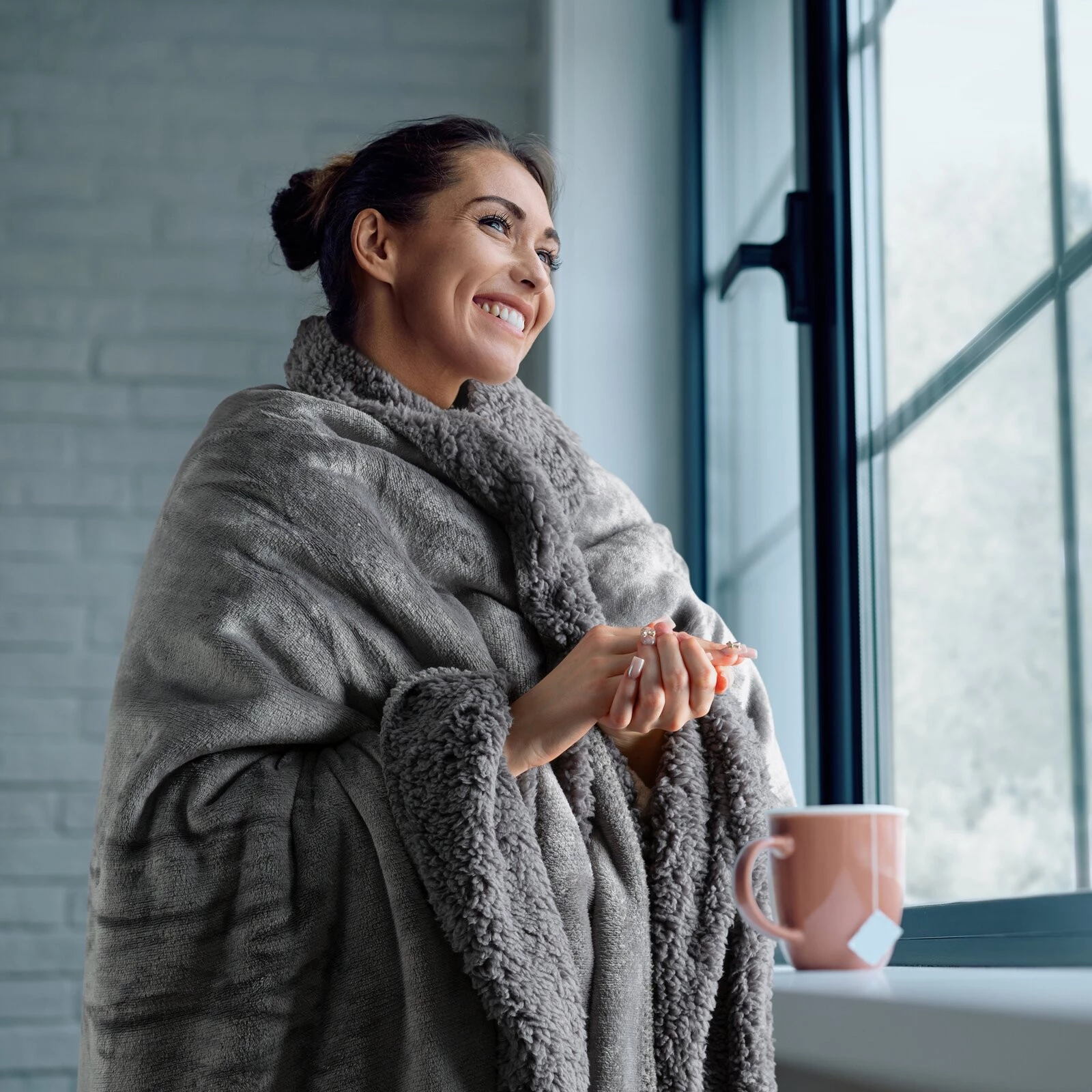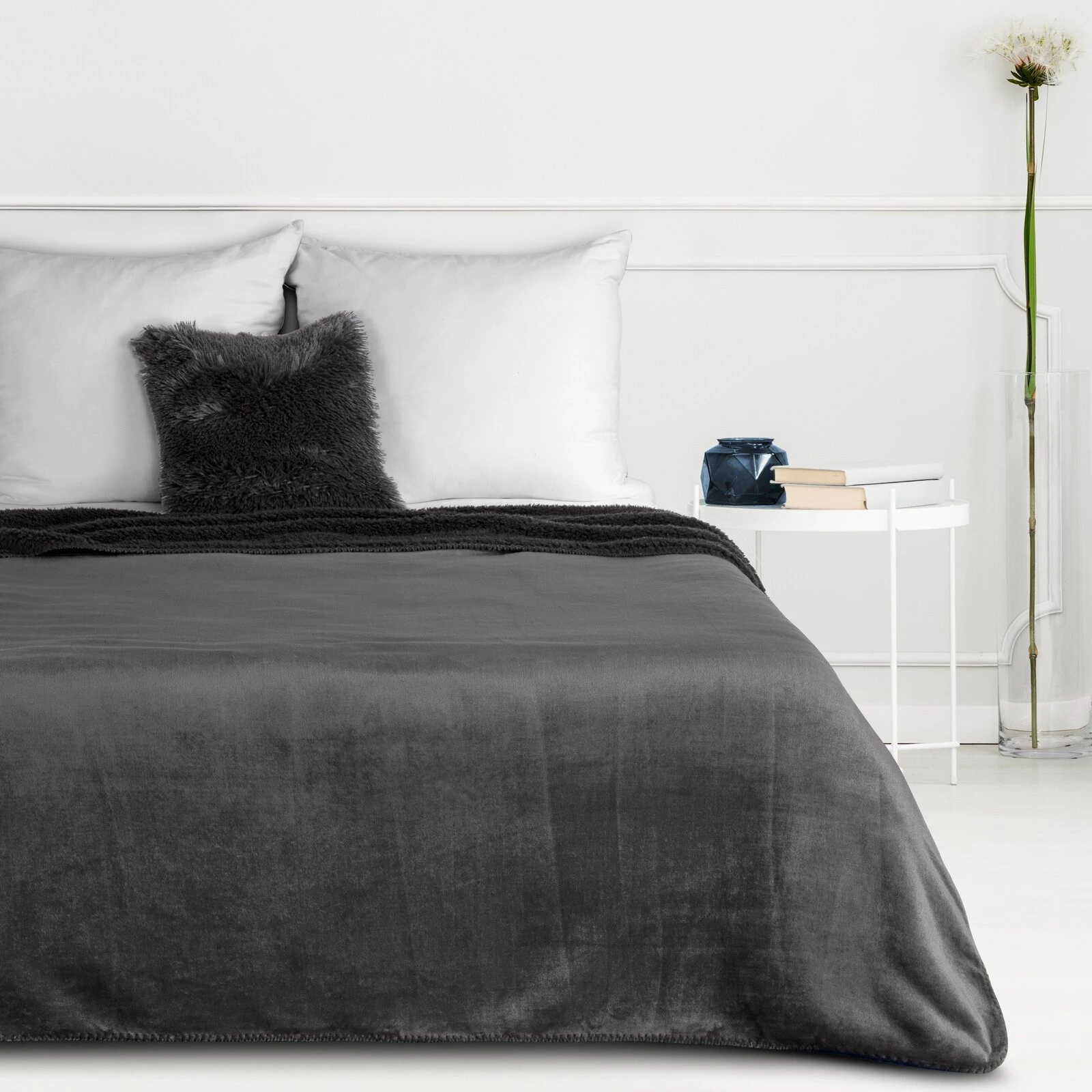 Miękki w dotyku koc jednokolorowy imitujący buklę szerokość: 170 cm, długość: 210 cm, kolor: stalowy, Gramatura: 170+170 GSM, Skład: 100% poliester