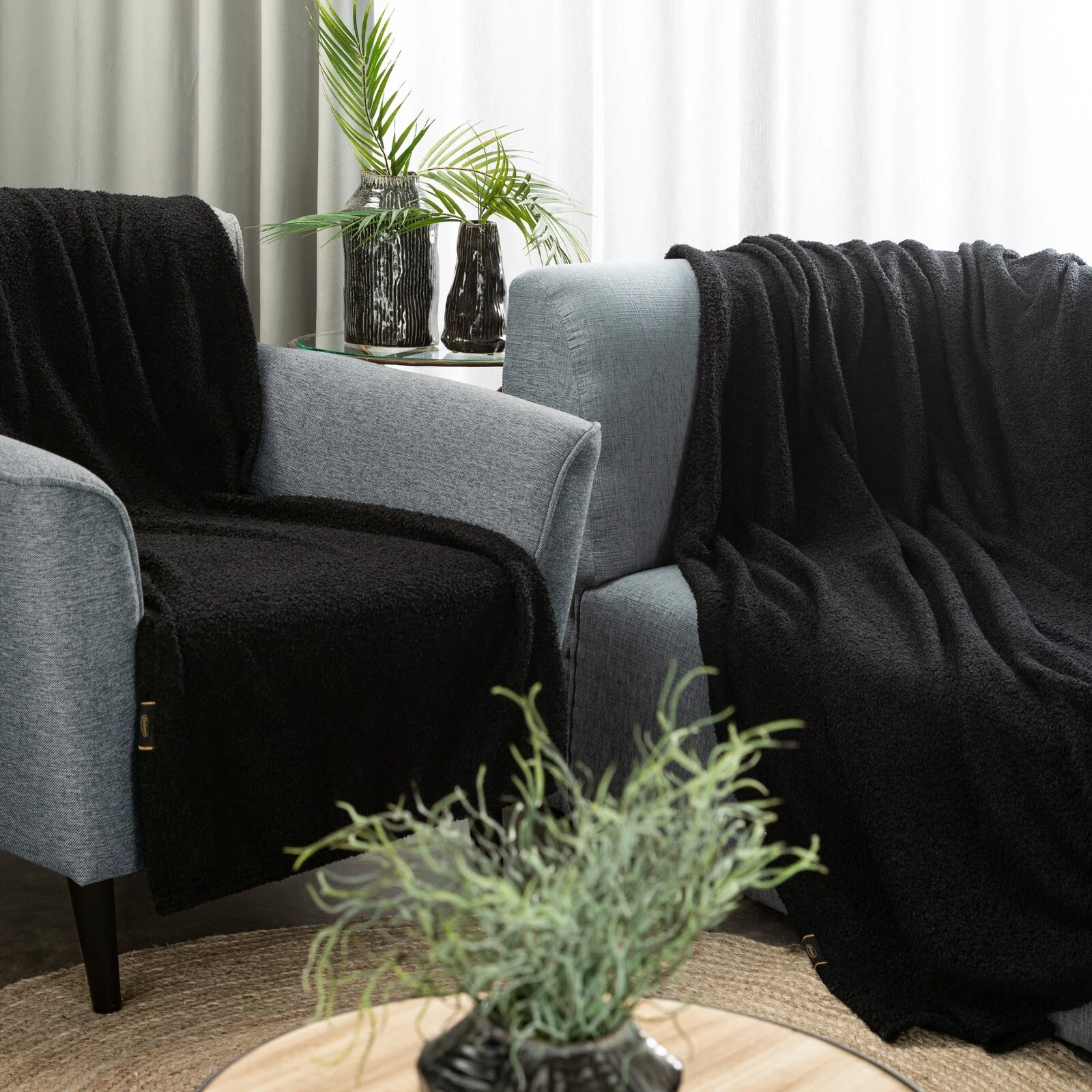 Wyjątkowo i magicznie miękki koc barankowy szerokość: 200 cm, długość: 220 cm, kolor: czarny, Gramatura: 260 GSM GSM, Skład: 100% poliester