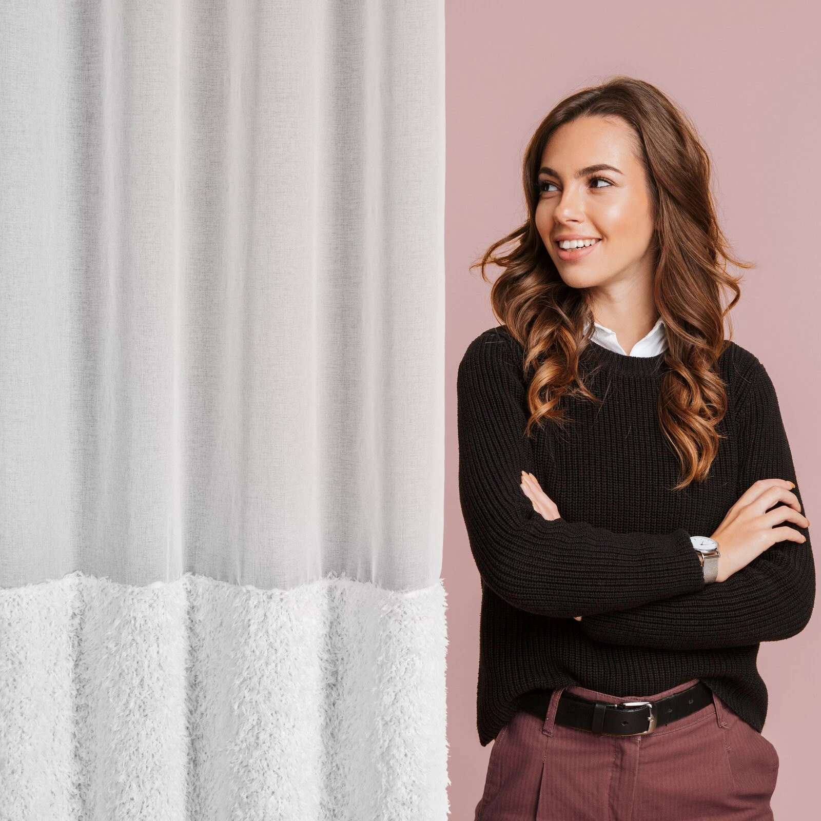 - Firana gotowa z aplikacją szerokość: 140 cm, długość: 250 cm, kolor: biały, Gramatura: 230 GSM, Skład: 100% poliester