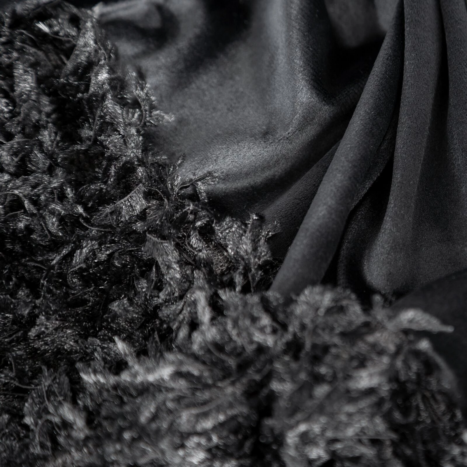 - Zasłona gotowa welwetowa z aplikacją szerokość: 140 cm, długość: 270 cm, kolor: czarny, Gramatura: 230 GSM, Skład: 100% poliester